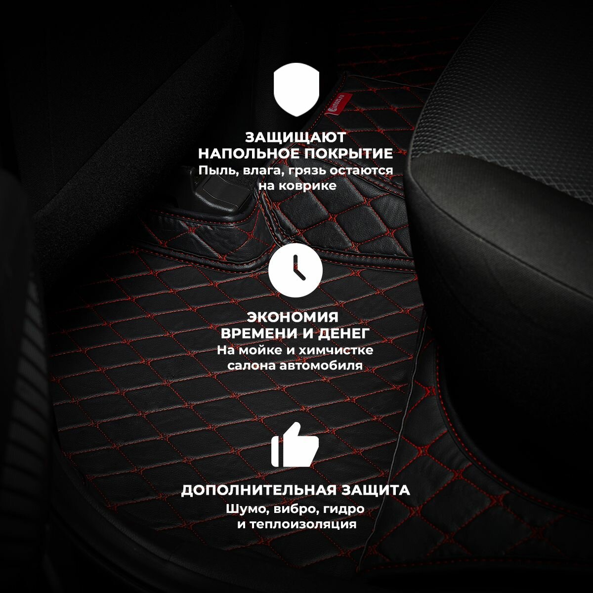 Отзывы на Кожаные 3D коврики в салон с бортами для Kia Rio III (2011+) черные с красной строчкой / Киа Рио 3 (2011+)