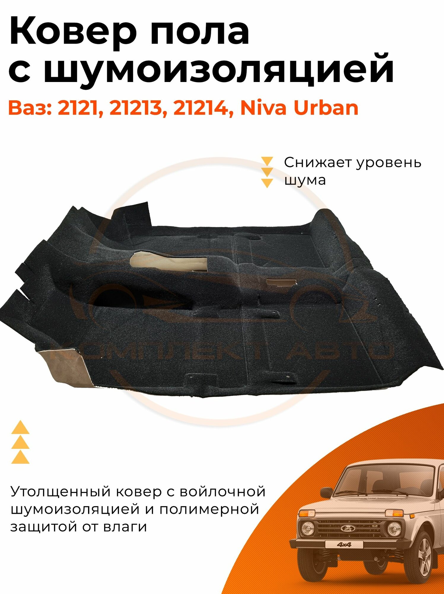 Ковер пола Люкс 4х слойный с шумоизоляцией цельной ВАЗ 2121,21213,21214, Урбан, Нива, Niva Legend информация: