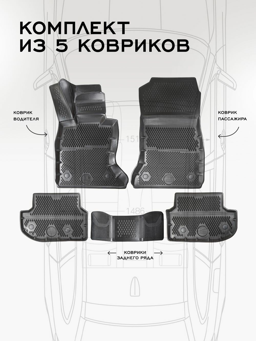 Коврики в машину Hongqi HS5 I (2019-н. в.) / полный набор в салон Хончи ХС5 с бортами и ячейками ЭВА 3Д / версия "Premium EVA 3D" Delform 6 900 ₽