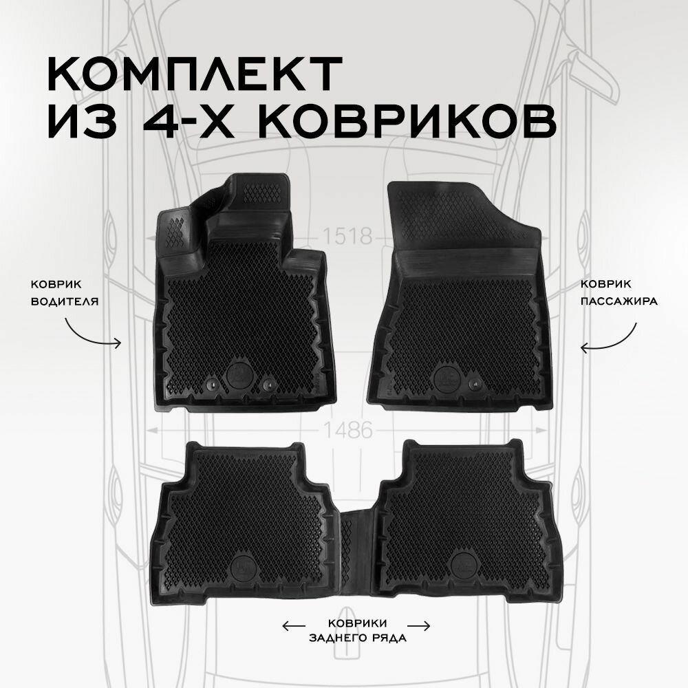 Коврики для автомобиля Lada Largus из 4-х (2012-н. в.) / полный набор в салон для автомобиля Лада Ларгус с бортами и ячейками ЭВА 3Д / версия "Standart EVA 3D" Delform 4 850 ₽