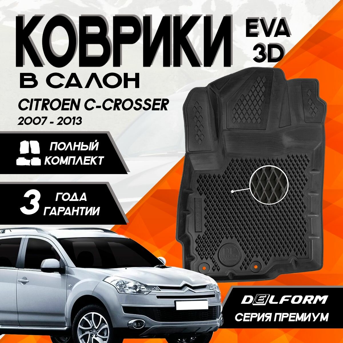 Коврики Ситроен С-кроссер (2007-2013) / Citroen C-Crosser (2007-2013) с бортами комплект в салон информация: