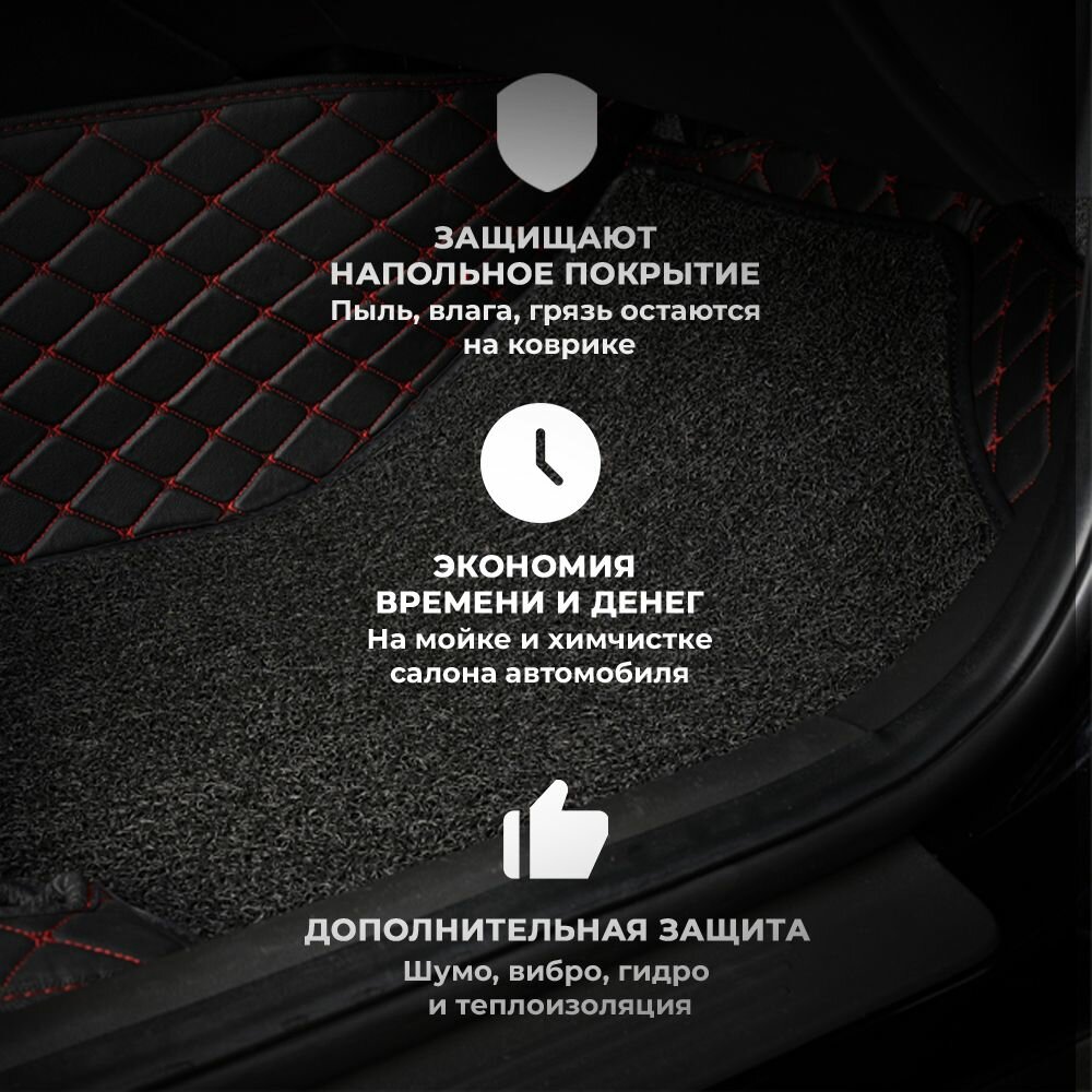 Отзывы на Кожаные 3D коврики в салон с бортами с ворсом для Toyota Camry VIII (XV70) (2017+) черные с красной строчкой / Тойота Камри 8 (ХВ70) (2017+) 3Д ковры в салон автомобиля