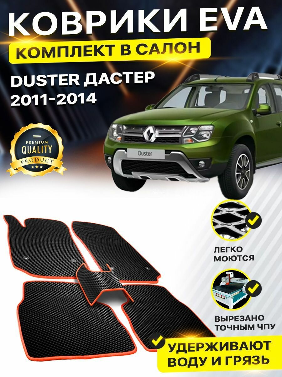 Коврики в салон автомобиля Renault Рено Ренаулт Duster Дастер 2011-2014 EVA ЕВА ЭВА ромб черныйоранжевый информация: