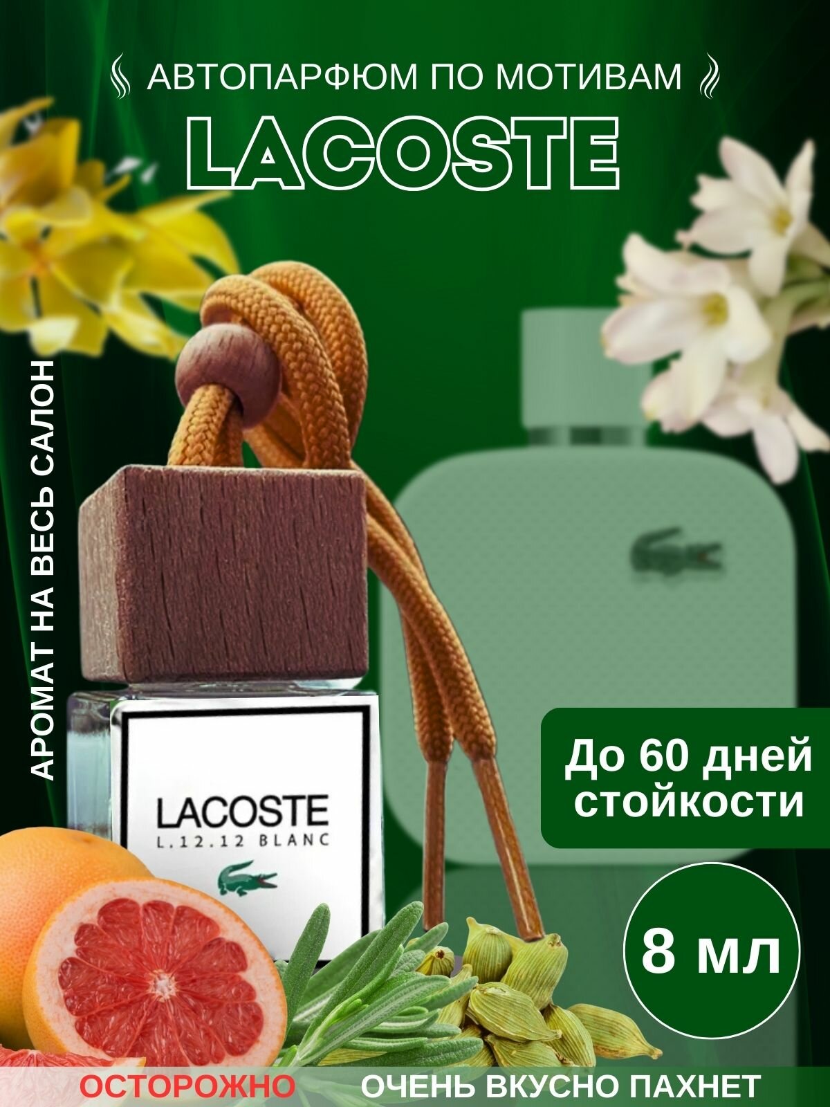 Автопарфюм UseMee, по мотивам Lacoste, подвесной, органическое стекло, 8мл информация: