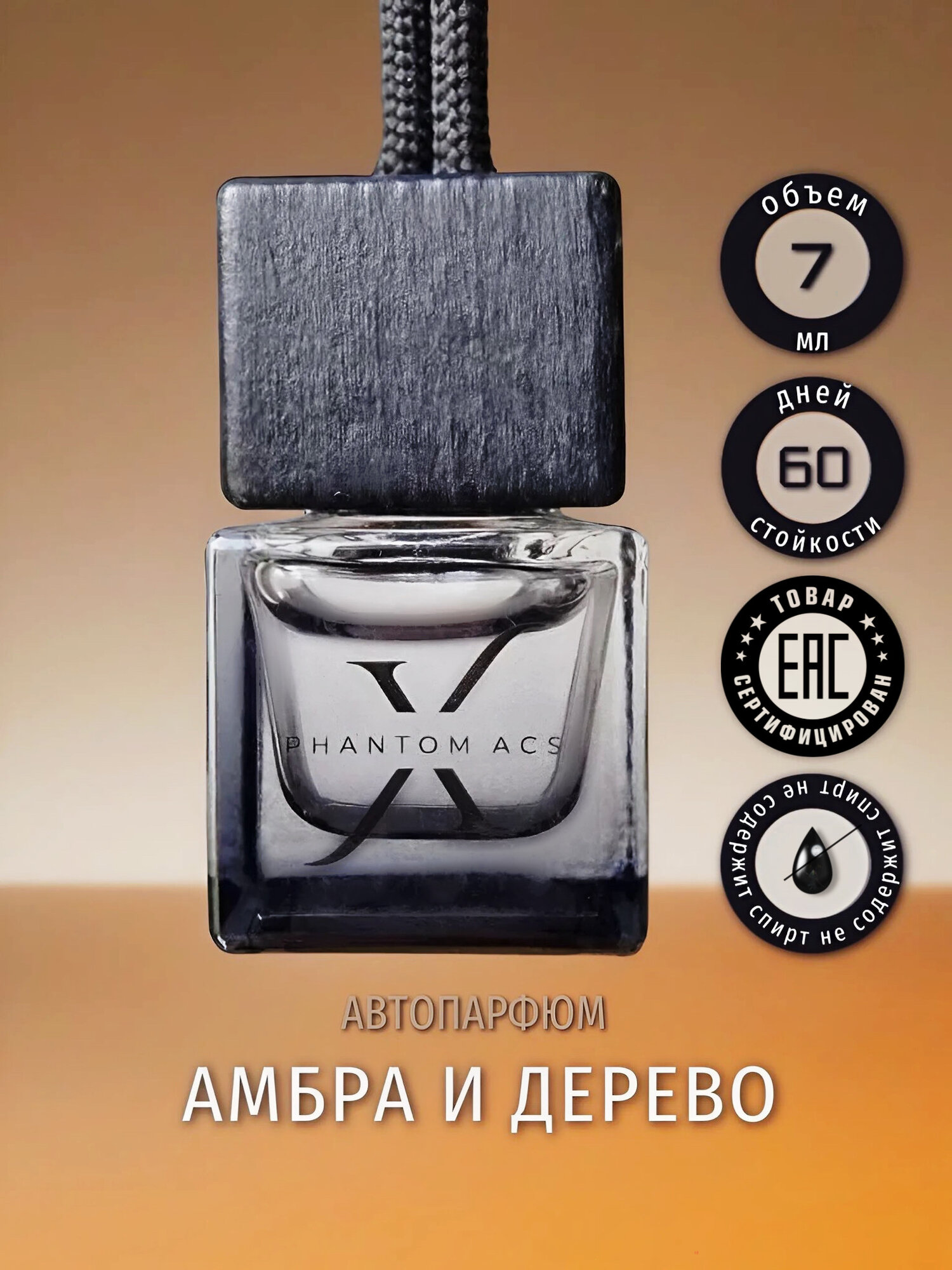 Ароматизатор для авто Phantom ACS Phantom X, жидкий, 7 мл, амбра, дерево информация: