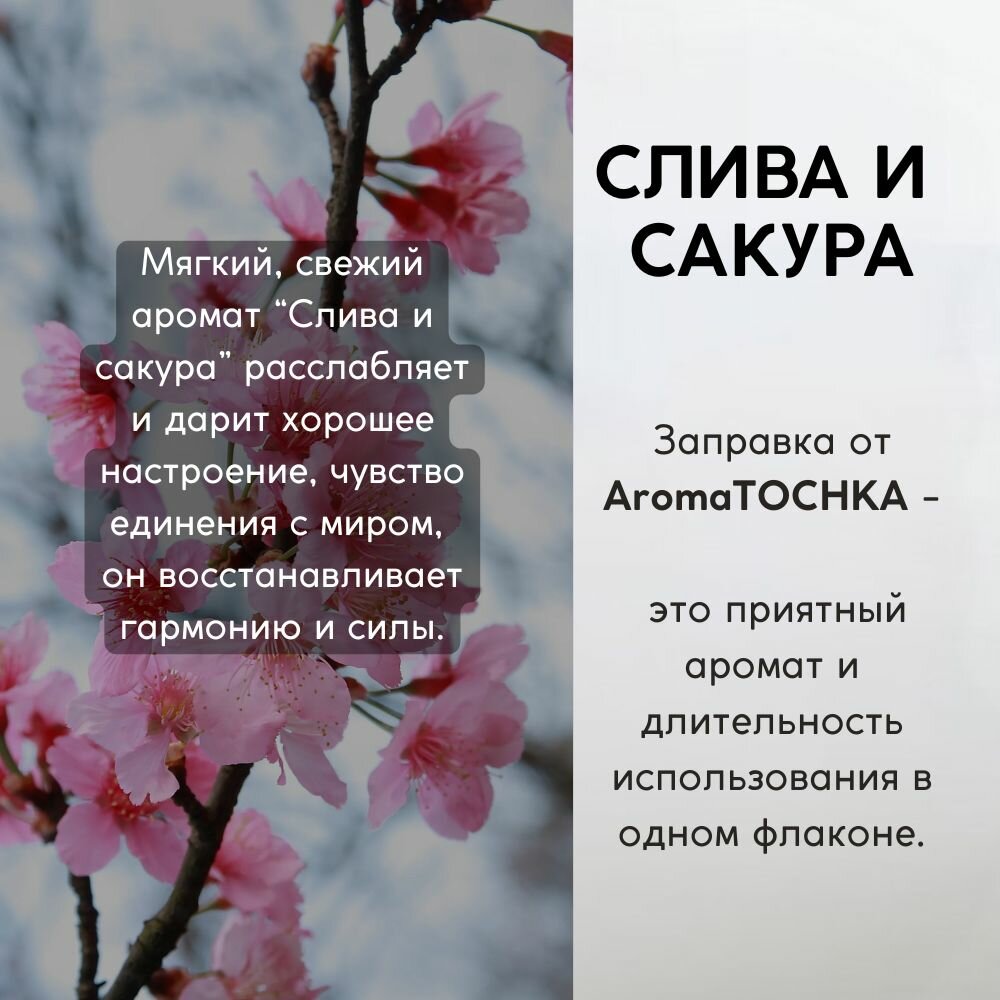 10 цен на Аромамасло заправка Слива и Сакура, 15мл, пропитка многоразового войлочного и стеклянного ароматизатора / пахучка в машину
