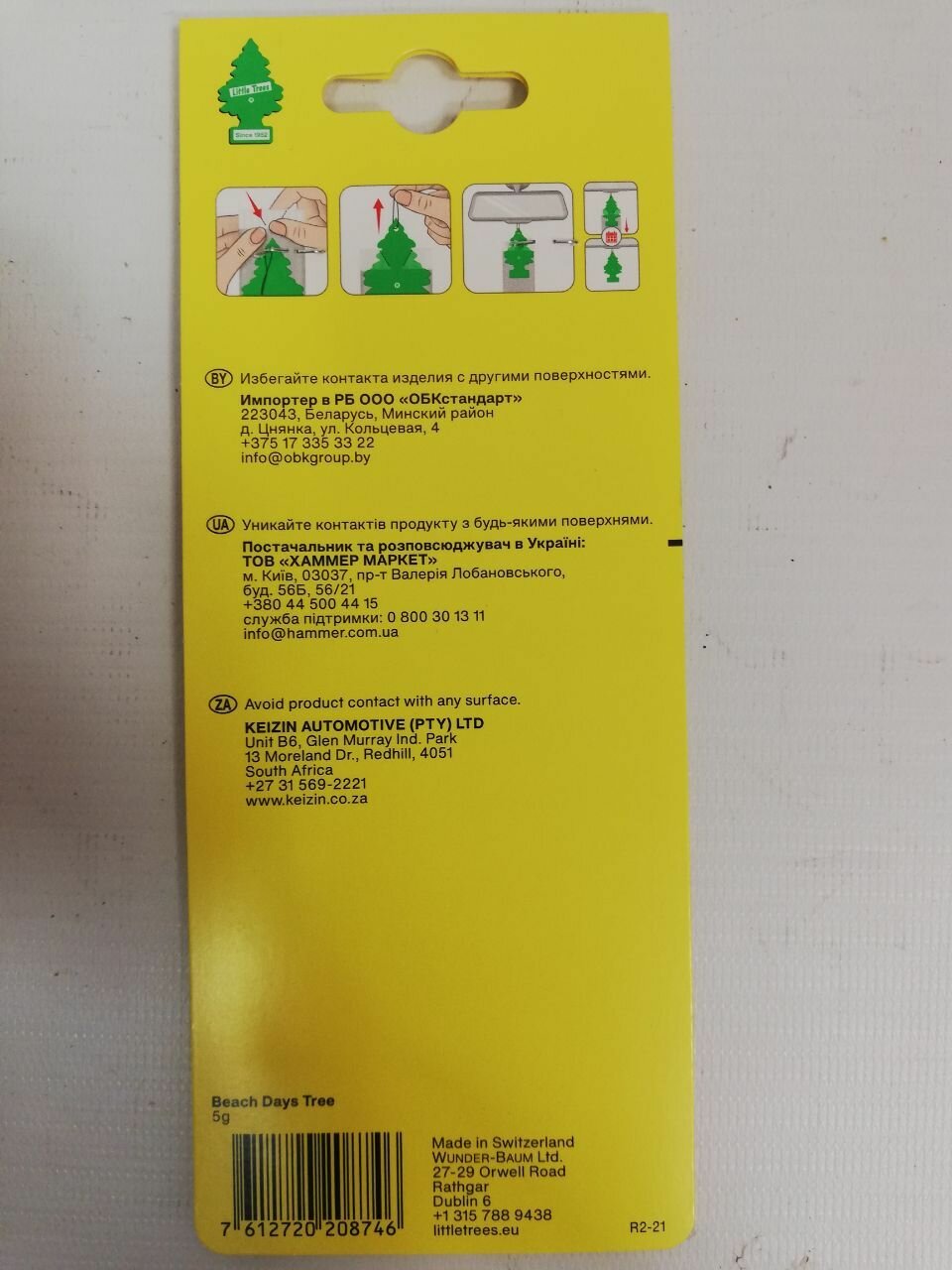 Ароматизатор Подвесной Елочка (Пляжные дни) Little Trees информация: