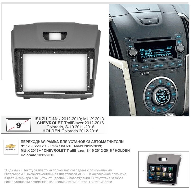 Переходная рамка Chevrolet TrailBlazer, S-10 2012-2016; Isuzu D-Max 2012-2019 / 9 дюймов (230:220:130 мм) информация: