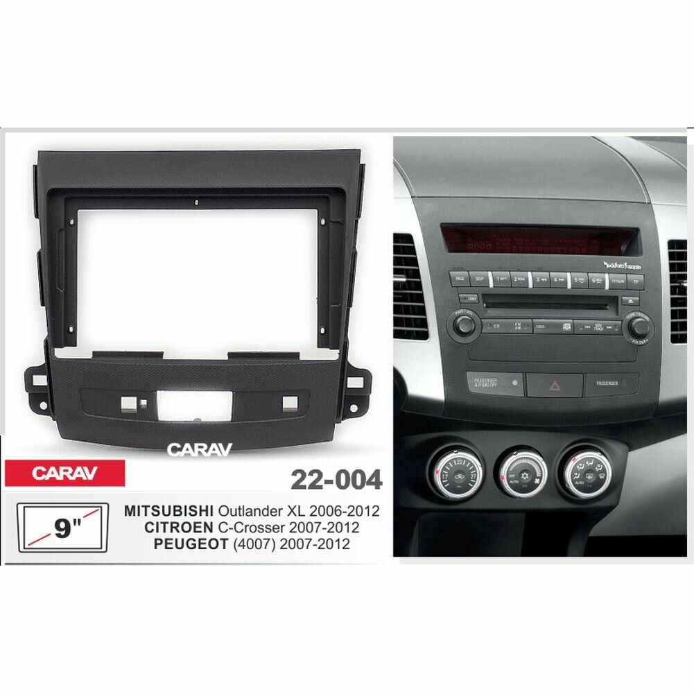 10 цен на Переходная рамка 9" Android для CITROEN C-Crosser 2007-2012 / PEUGEOT (4007) 2007-2012 / MITSUBISHI Outlander XL 2006-2012 CARAV 22-004