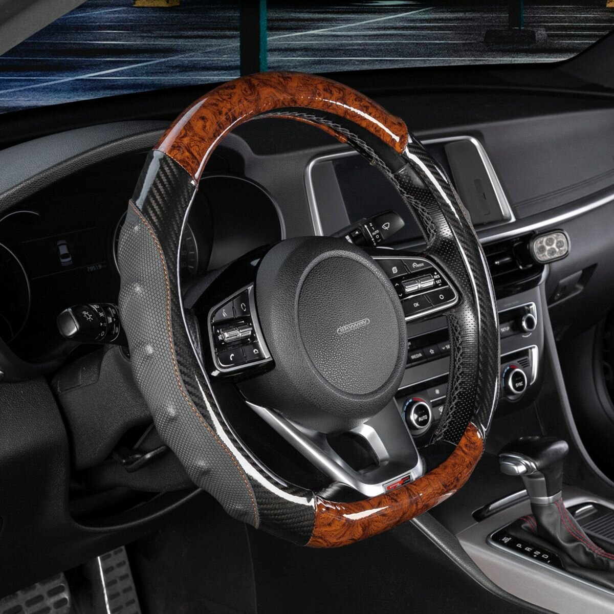 Оплетка на руль универсальная из экокожи «CARBON» М 37-39 см (чёрная, строчка чёрная) belais #21608