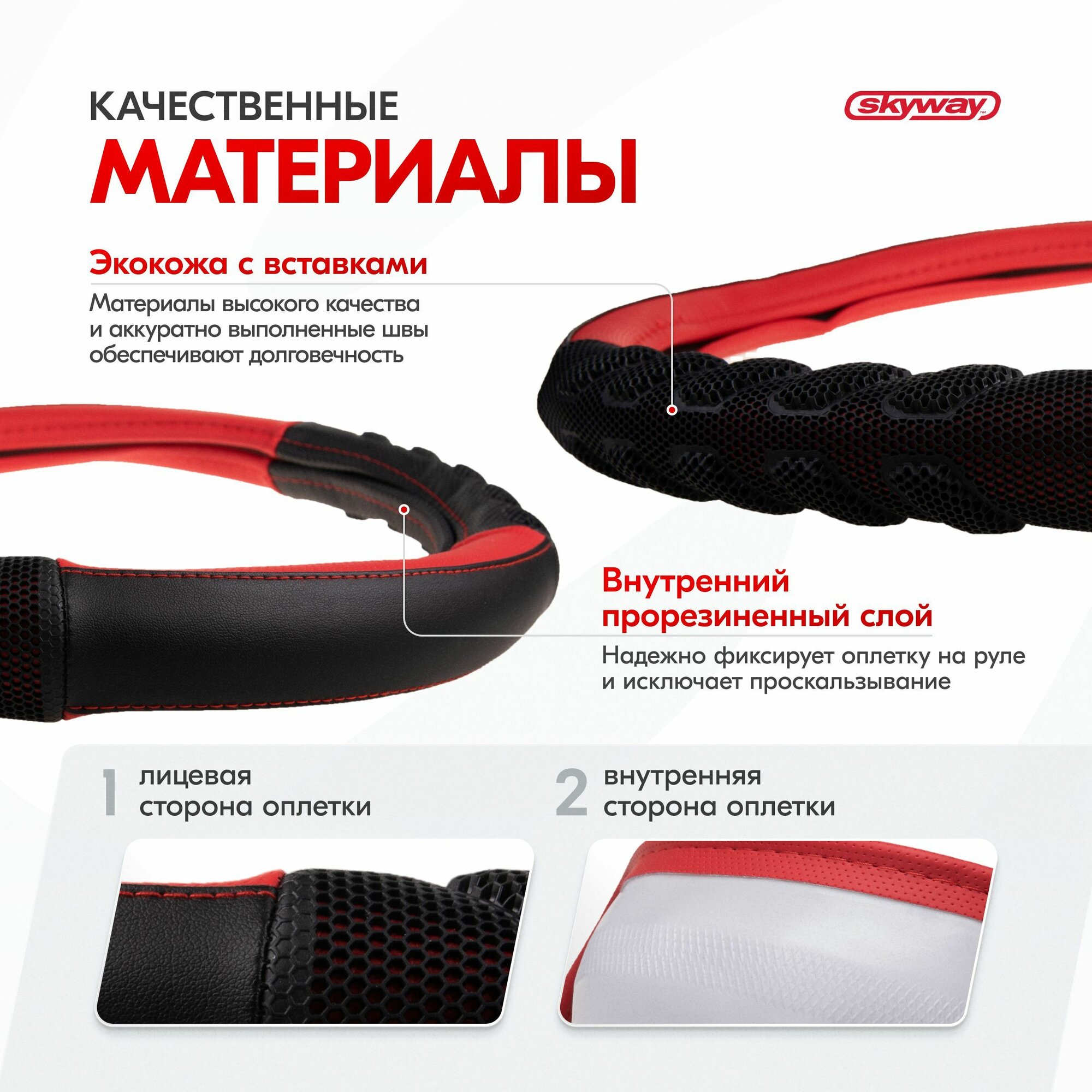 10 цен на Оплетка на руль Skyway Racer-1 из экокожи черно-красная 38 см