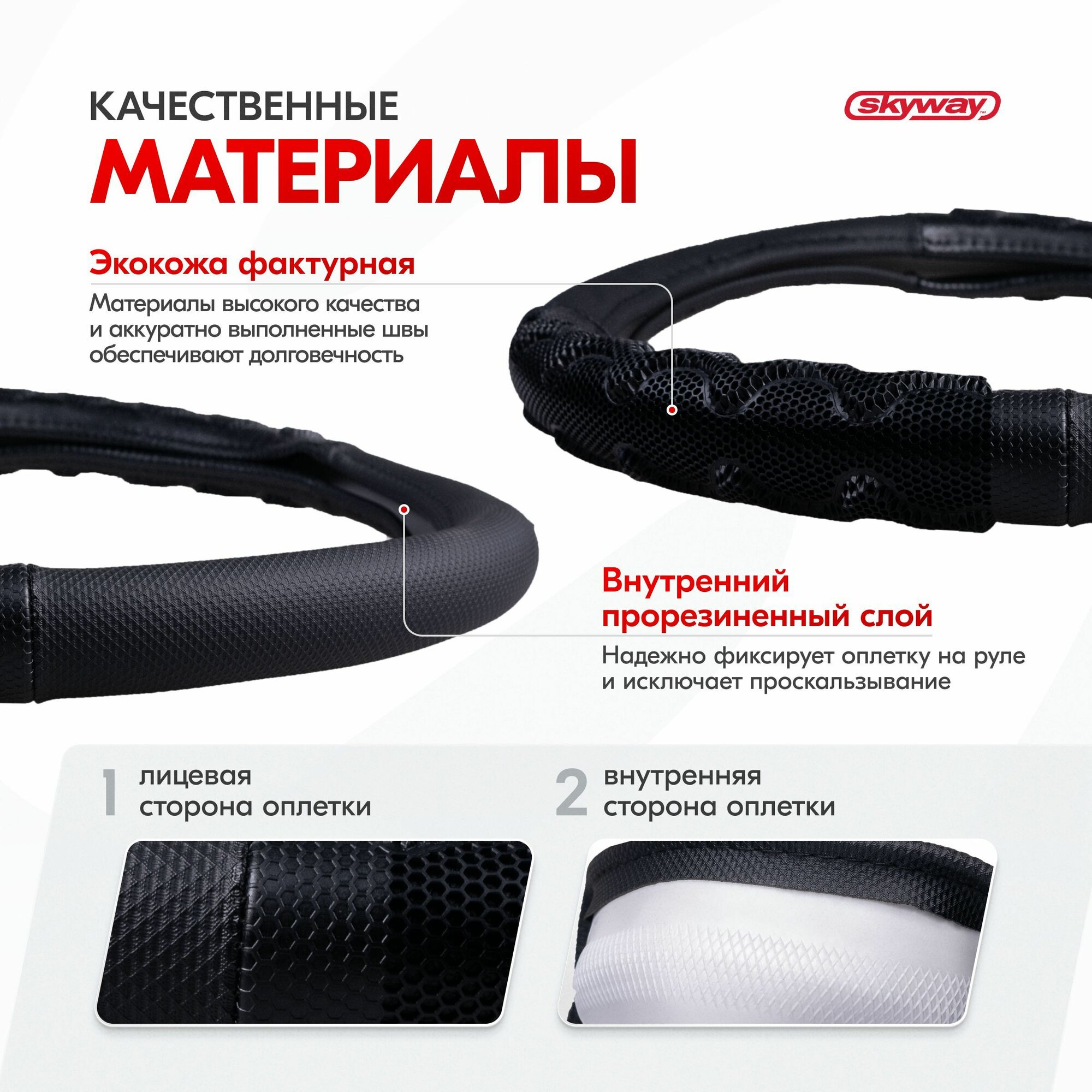 10 цен на Оплетка на руль Skyway Racer-2 из экокожи черная 38 см