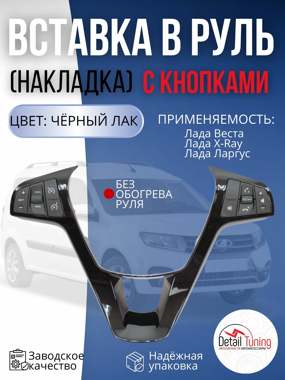 10 цен на Вставка (накладка) в руль с кнопками Веста , (без обогрева руля) черный глянец , X-Ray, Ларгус ФЛ / Lada Vesta , Иксрей , Largus FL