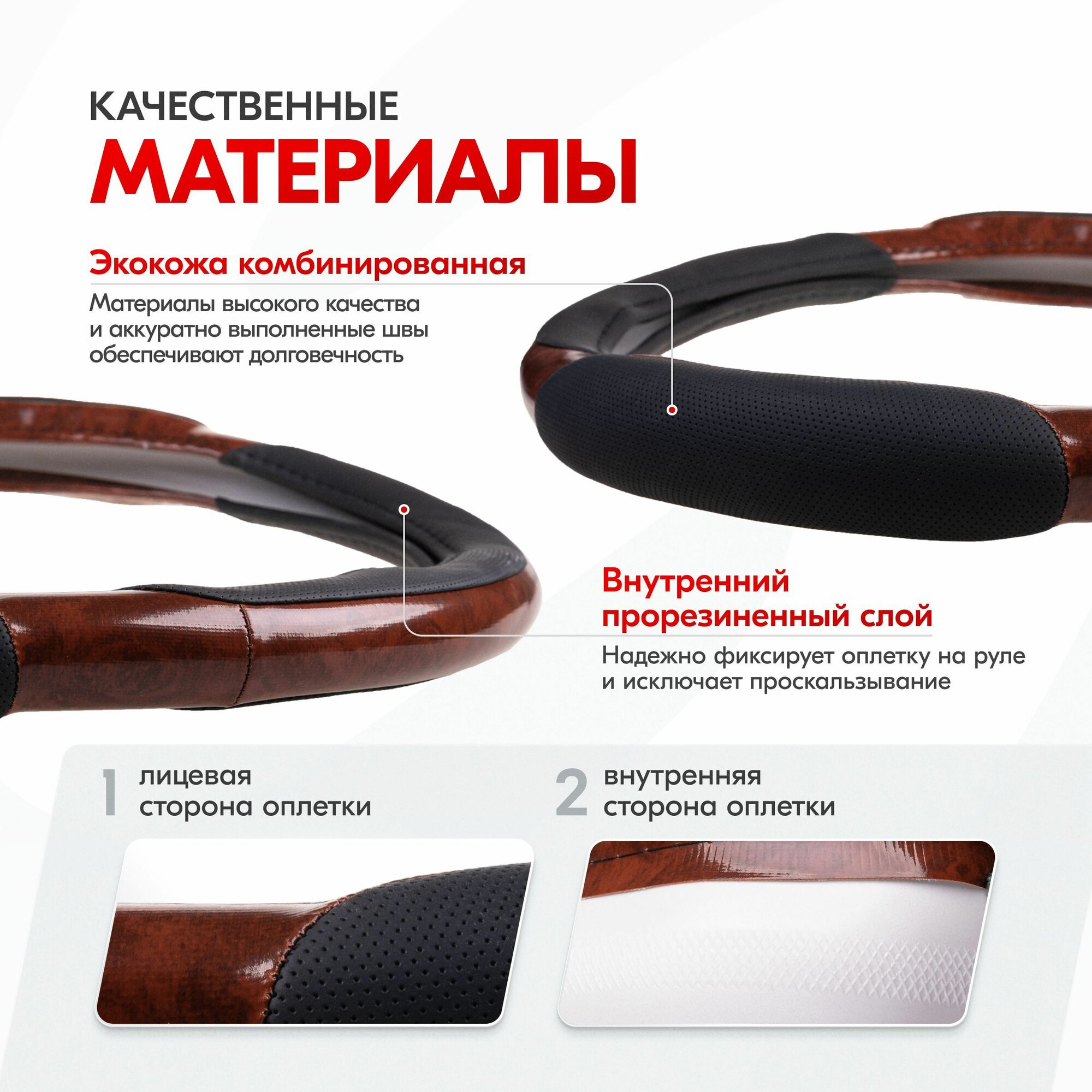 10 цен на Оплетка на руль Skyway Wood-1 из экокожи коричневая 40 см