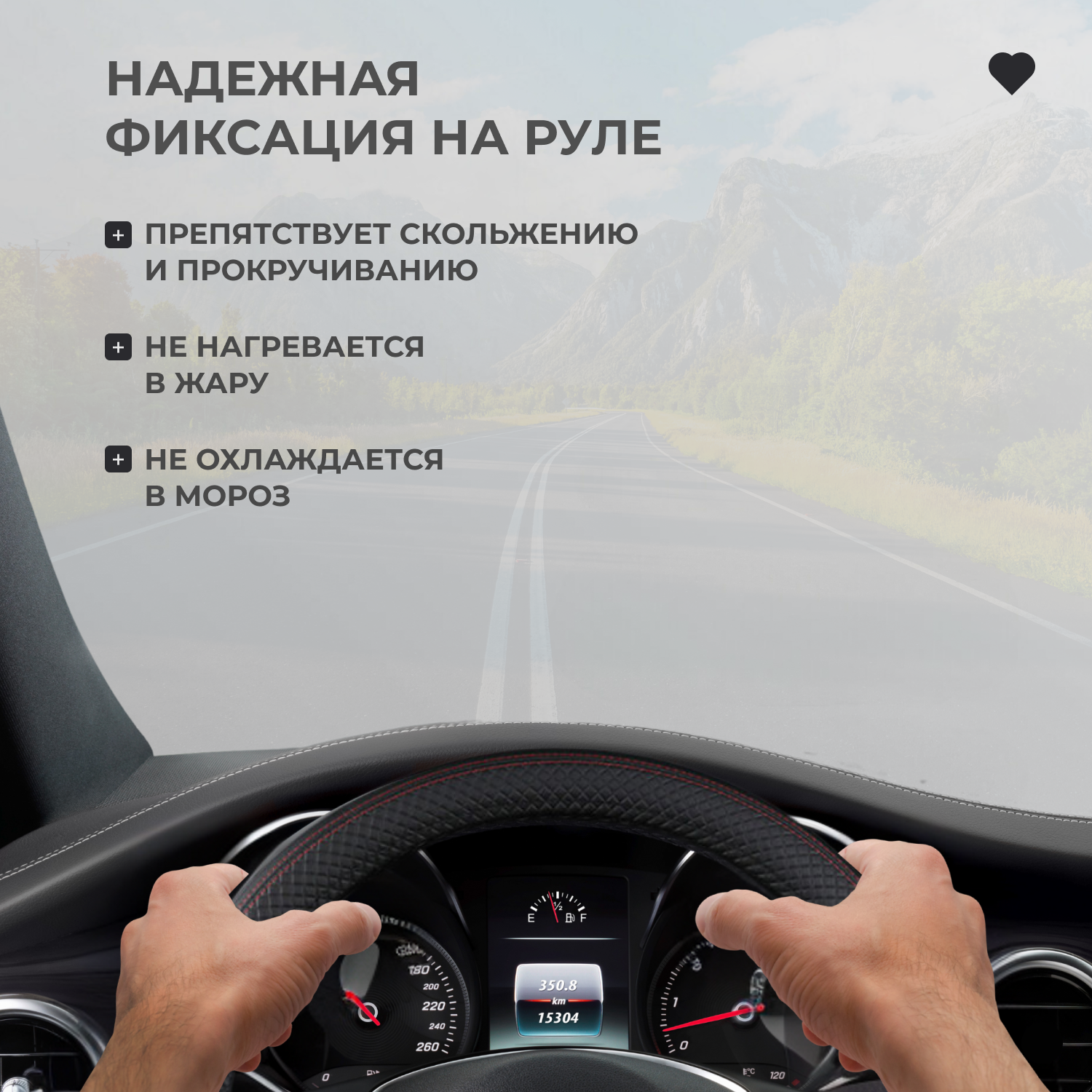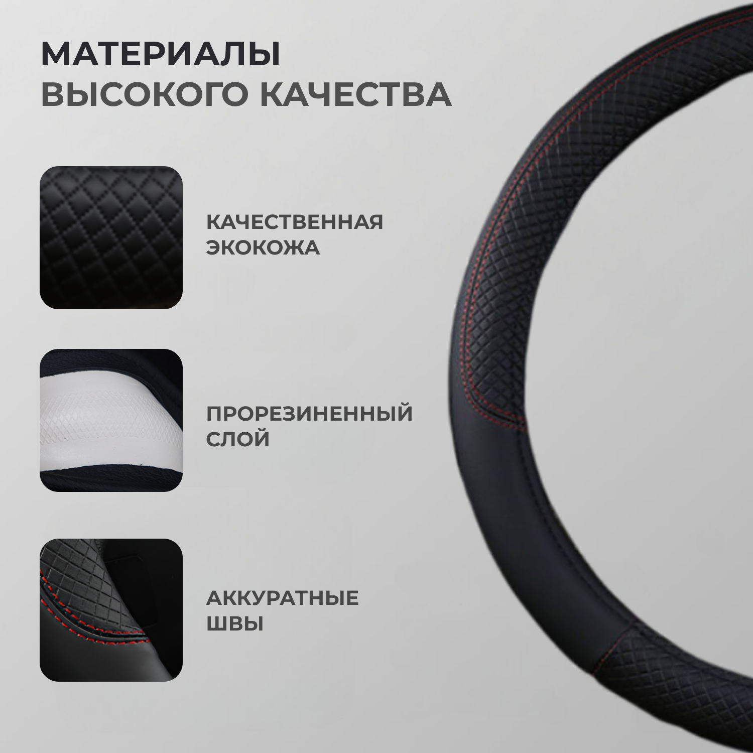 10 цен на Оплетка чехол на руль экокожа/ Диаметр 37-39.5 см/Универсальный размер. Цвет черный.