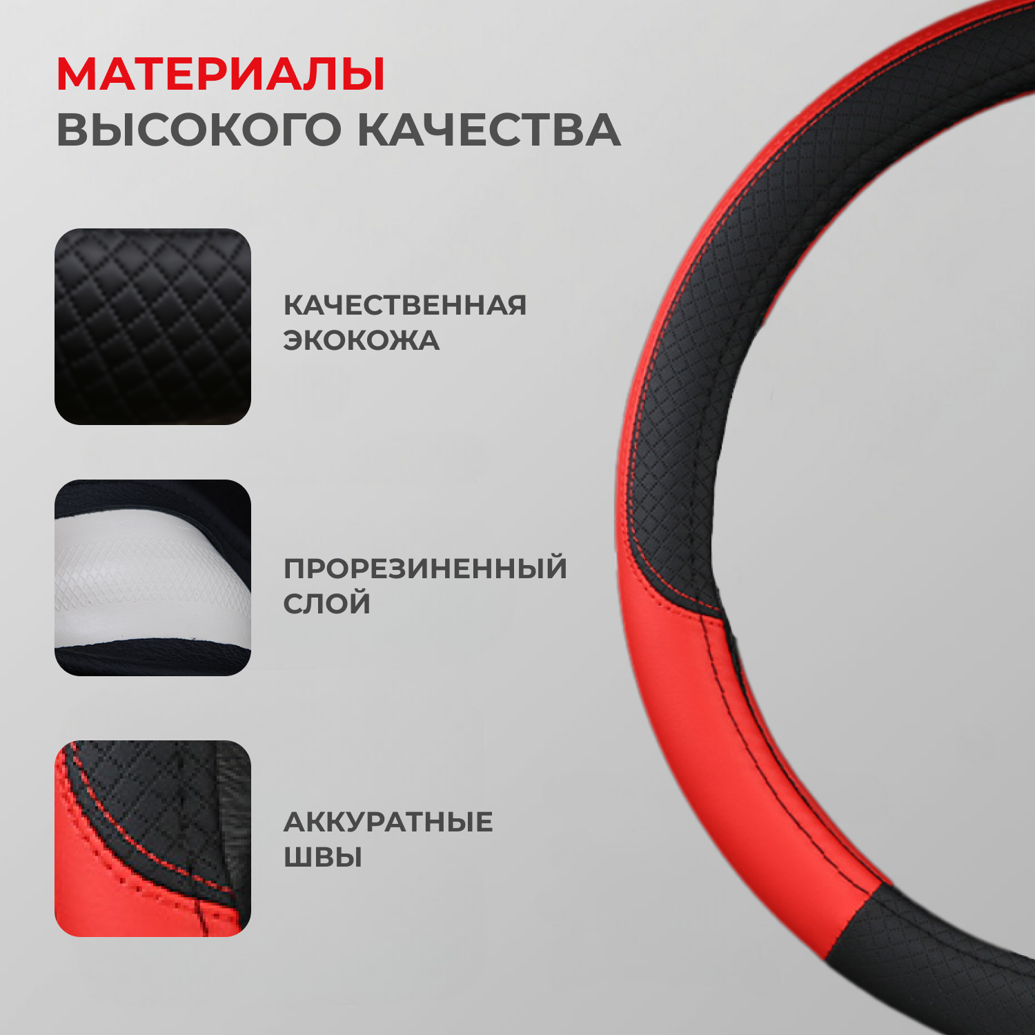 Отзывы на Оплетка чехол на руль экокожа/ Диаметр 37-39.5 см/Универсальный размер. Цвет красный.