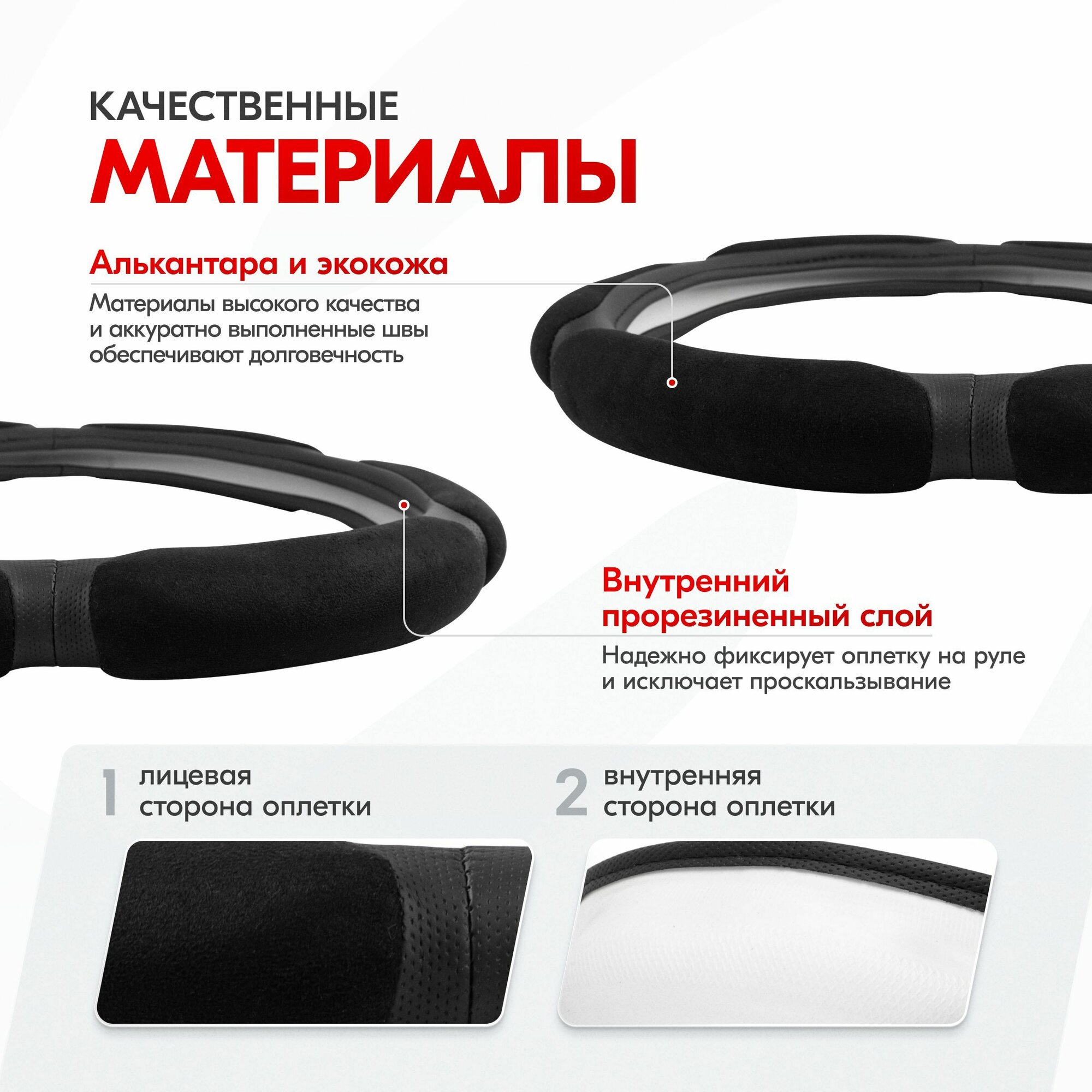 Оплетка на руль Top-12 SKYWAY M (37-39) серый экокожа, S01102501