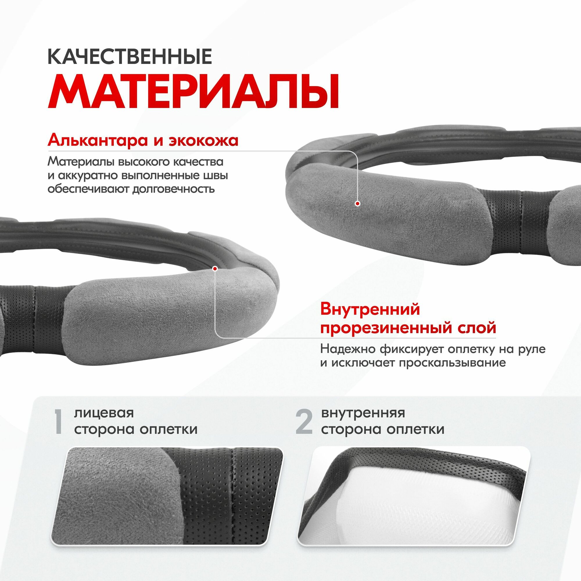 Оплетка на руль Top-12 SKYWAY M (37-39) серый экокожа, S01102501