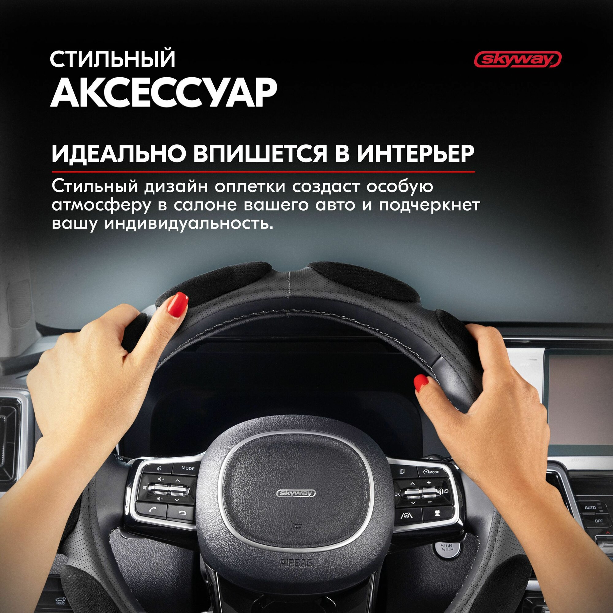 Оплетка на руль Top-12 SKYWAY M (37-39) серый экокожа, S01102501