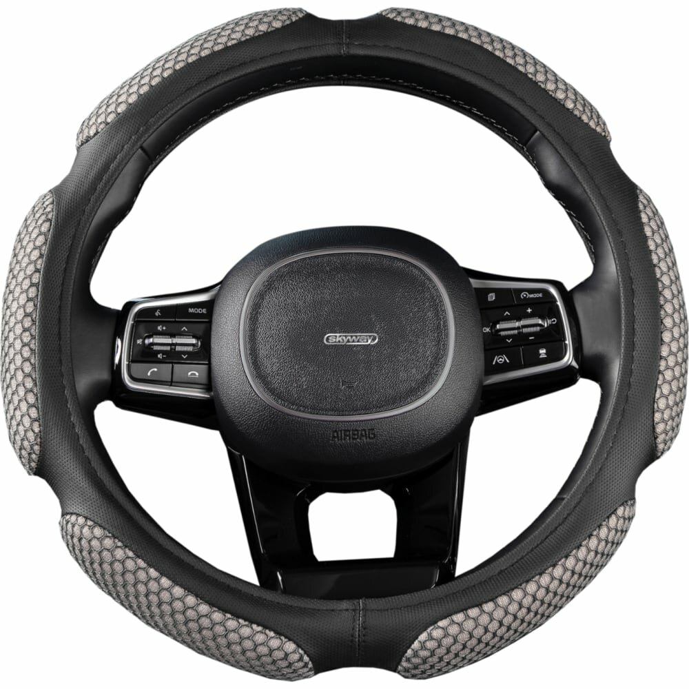 Оплетка на руль Top-12 SKYWAY M (37-39) серый экокожа, S01102501