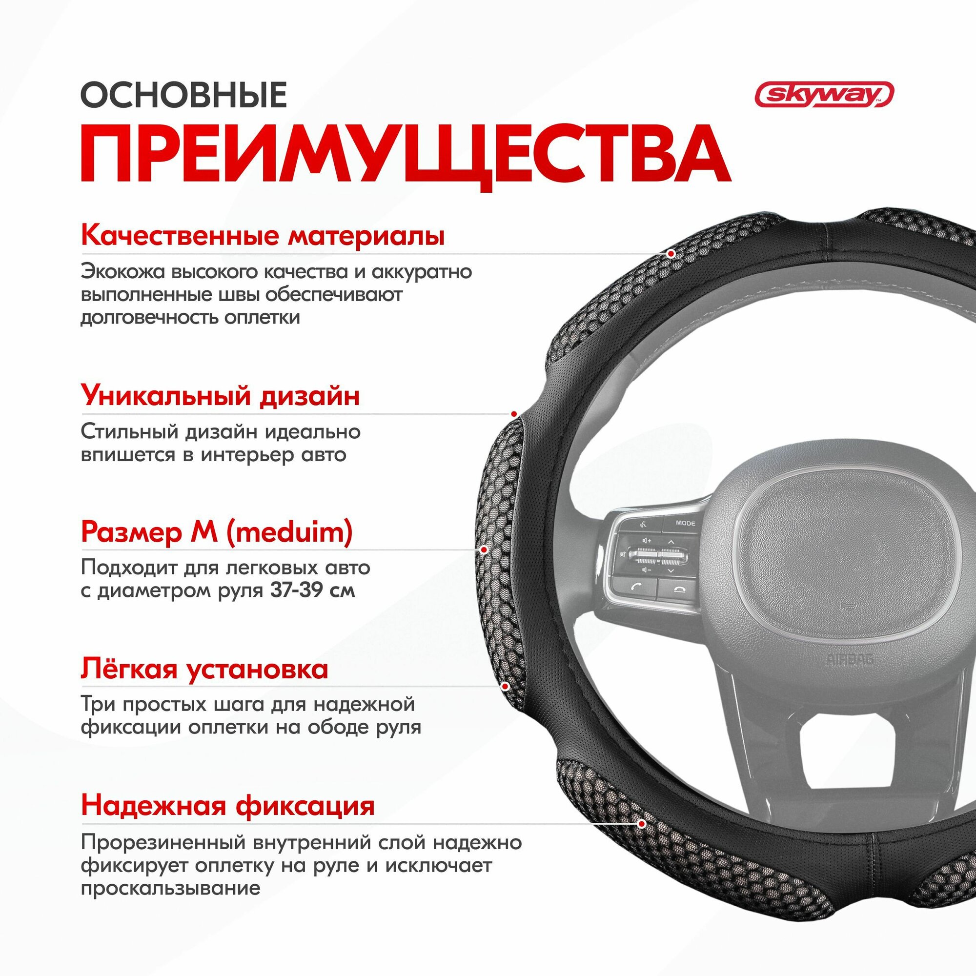 Оплетка на руль Top-12 SKYWAY M (37-39) серый экокожа, S01102501