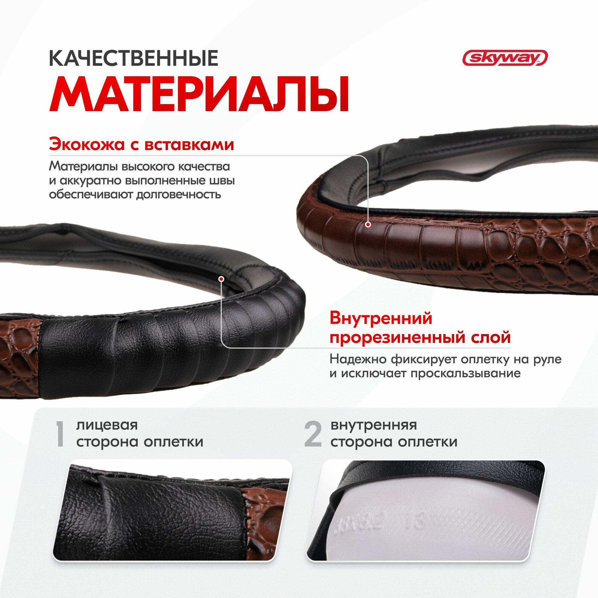 Оплетка на руль Wood-5 SKYWAY M (37-39) серый, коричневый экокожа 917 ₽