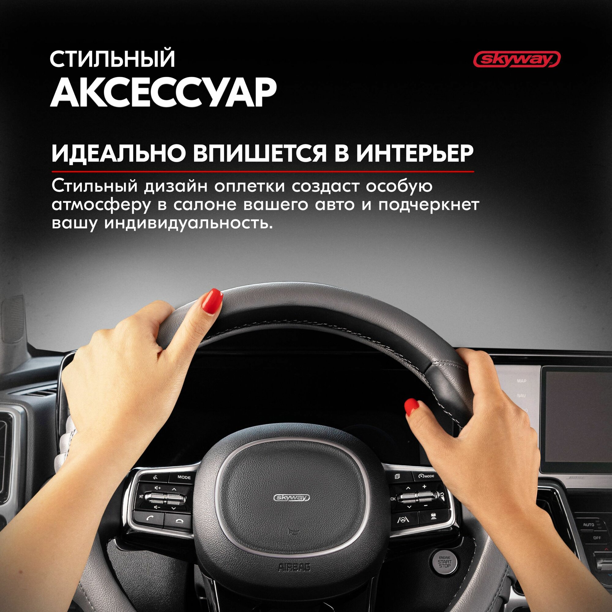 Оплетка на руль Top-12 SKYWAY M (37-39) серый экокожа, S01102501