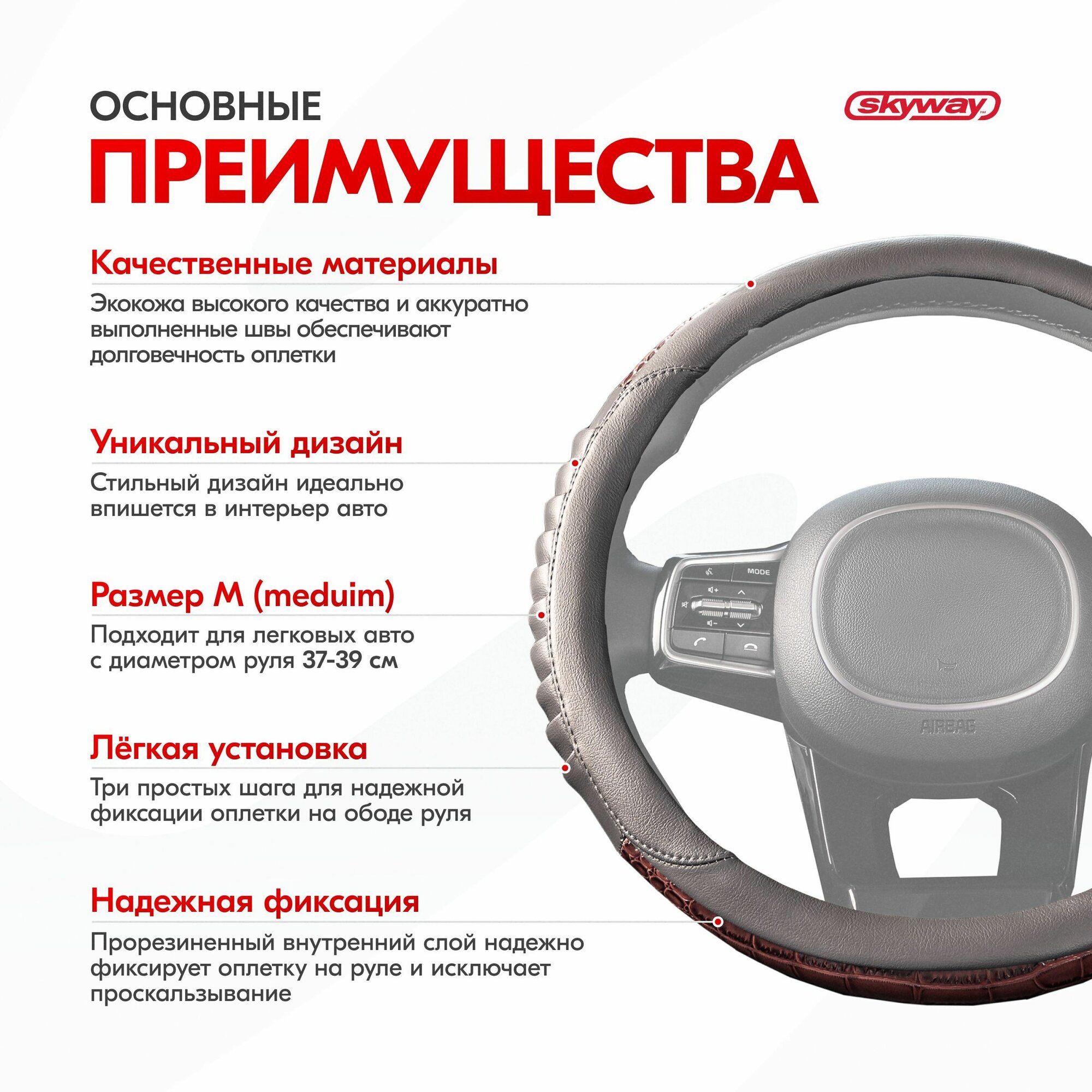 Отзывы на Оплетка на руль Wood-5 SKYWAY M (37-39) серый, коричневый экокожа