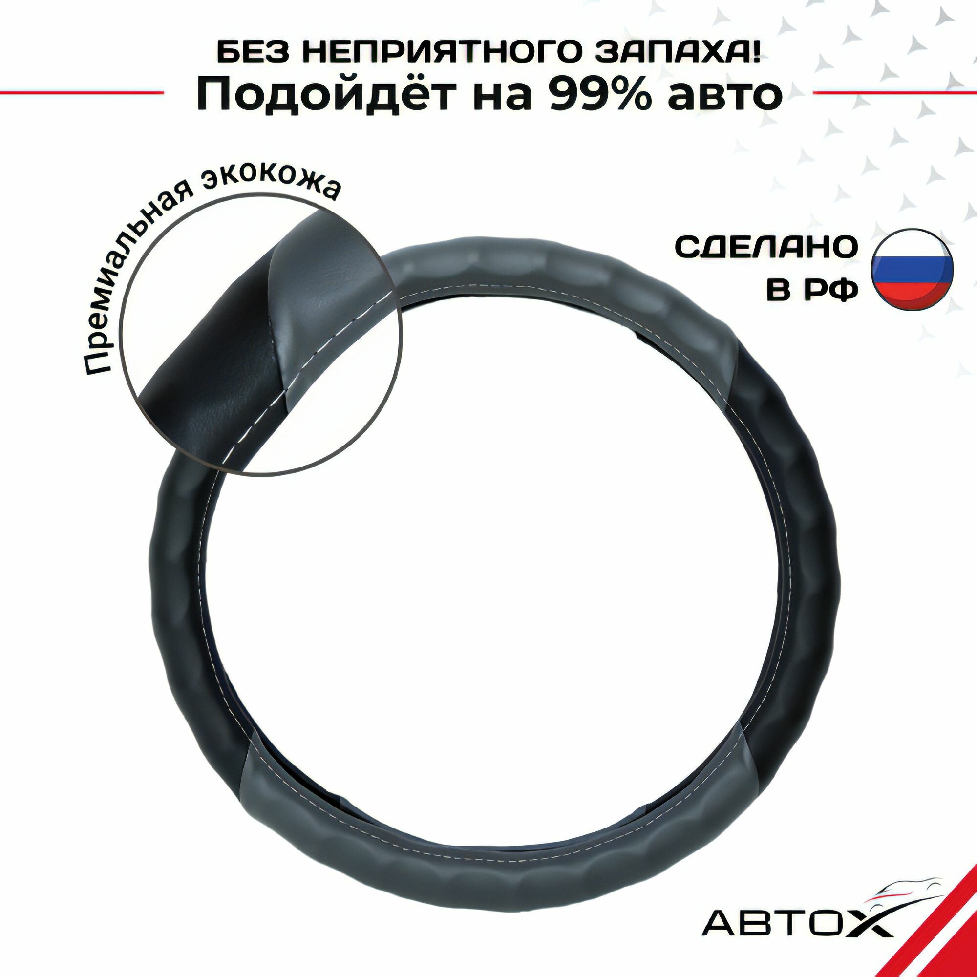 Оплетка на руль Top-12 SKYWAY M (37-39) серый экокожа, S01102501
