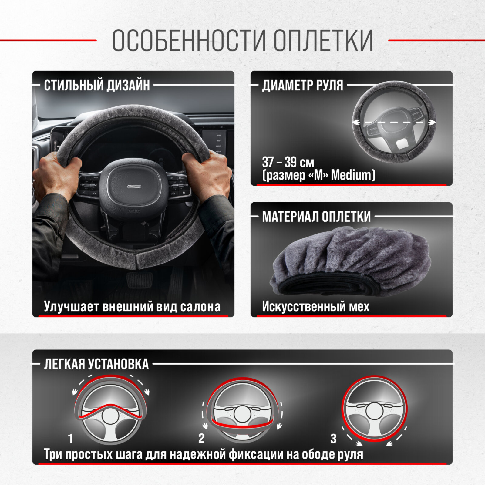 Оплётка руля SKYWAY Arctic-6 искусственный мех Серая М информация: