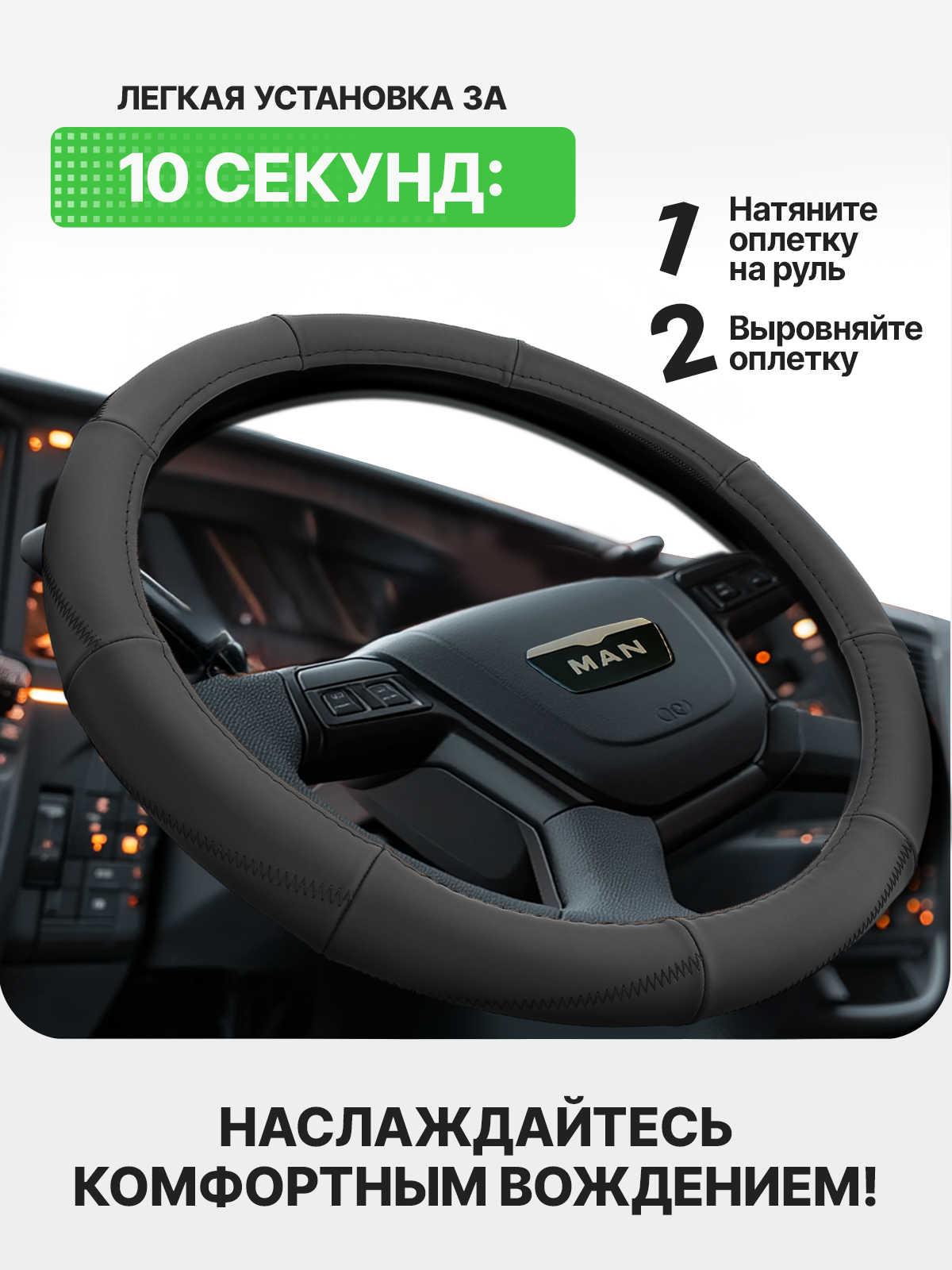 Отзывы на Оплетка на руль грузовая 49-51см натуральная кожа (МАЗ, КАМАЗ)