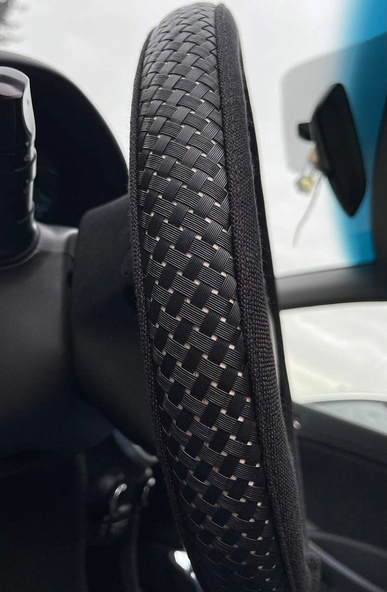 Оплетка на руль универсальная из экокожи «CARBON» М 37-39 см (чёрная, строчка чёрная) belais #21608