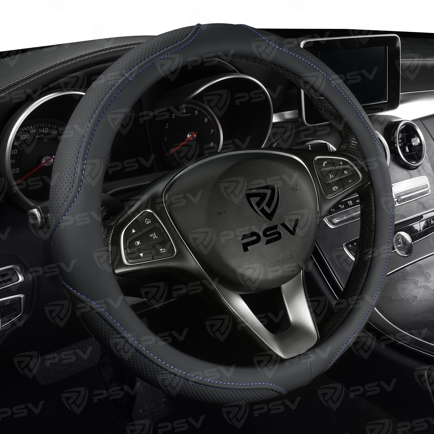 Оплетка на руль универсальная из экокожи «CARBON» М 37-39 см (чёрная, строчка чёрная) belais #21608