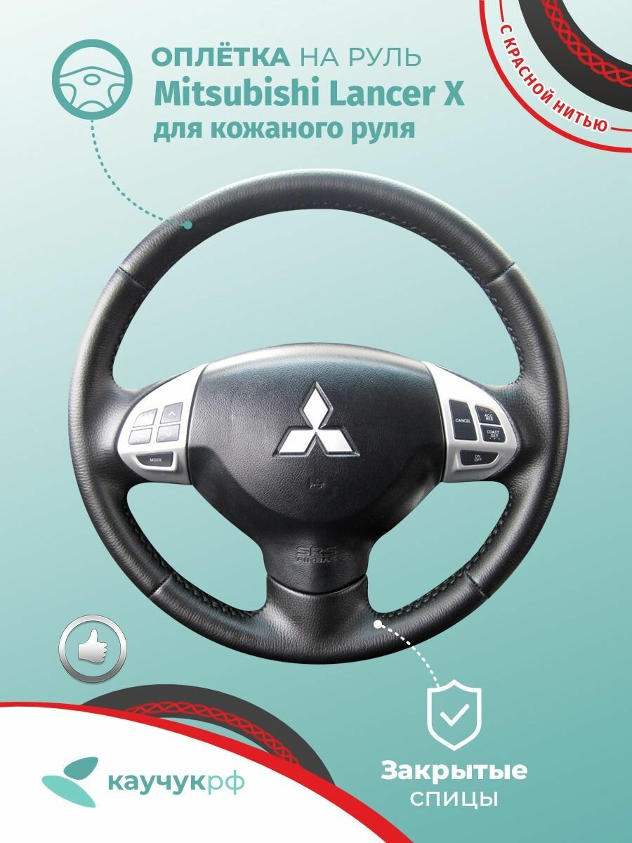 Отзывы на Оплетка на руль Mitsubishi Lancer X для кожаного руля , черная кожа с красным швом.