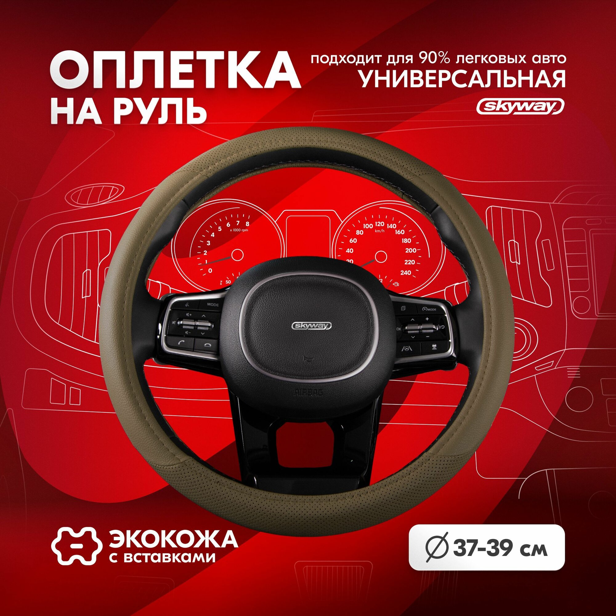Оплетка на руль Skyway Crome-1 из экокожи бежевая 38 см информация: