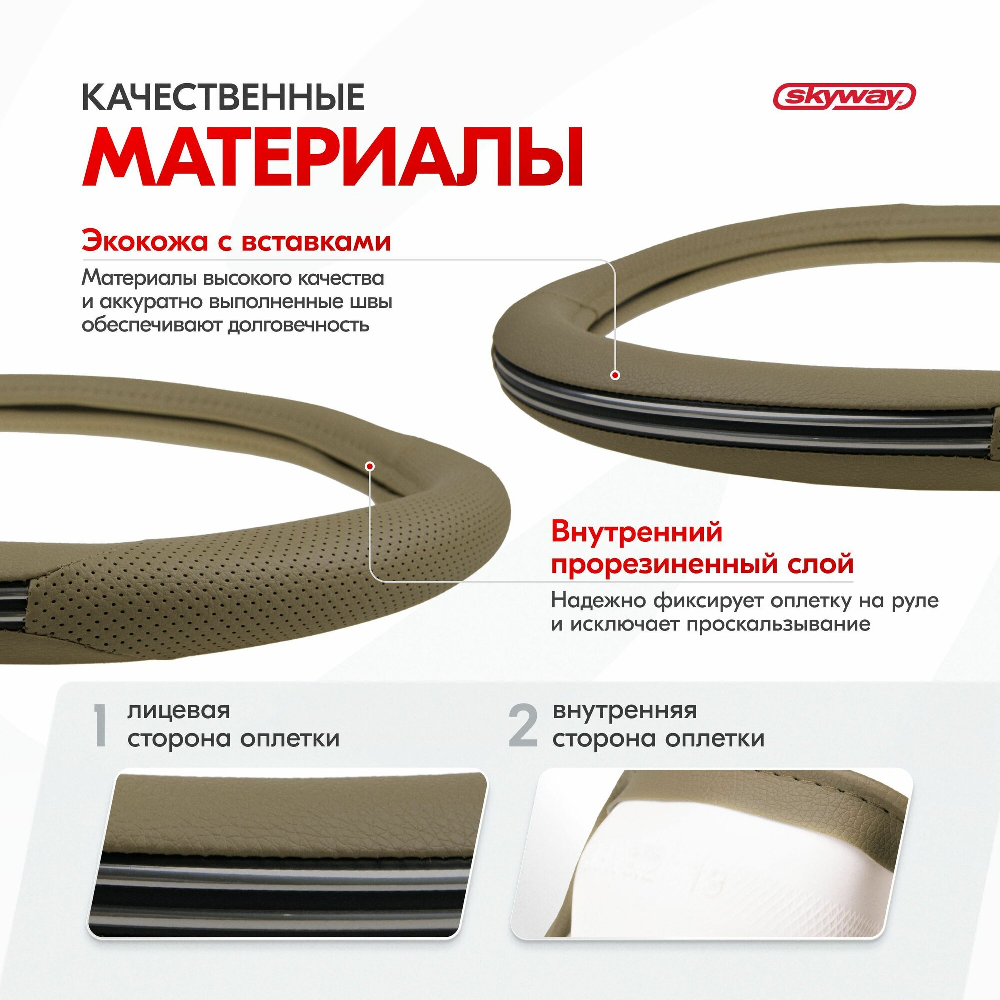 10 цен на Оплетка на руль Skyway Crome-1 из экокожи бежевая 38 см