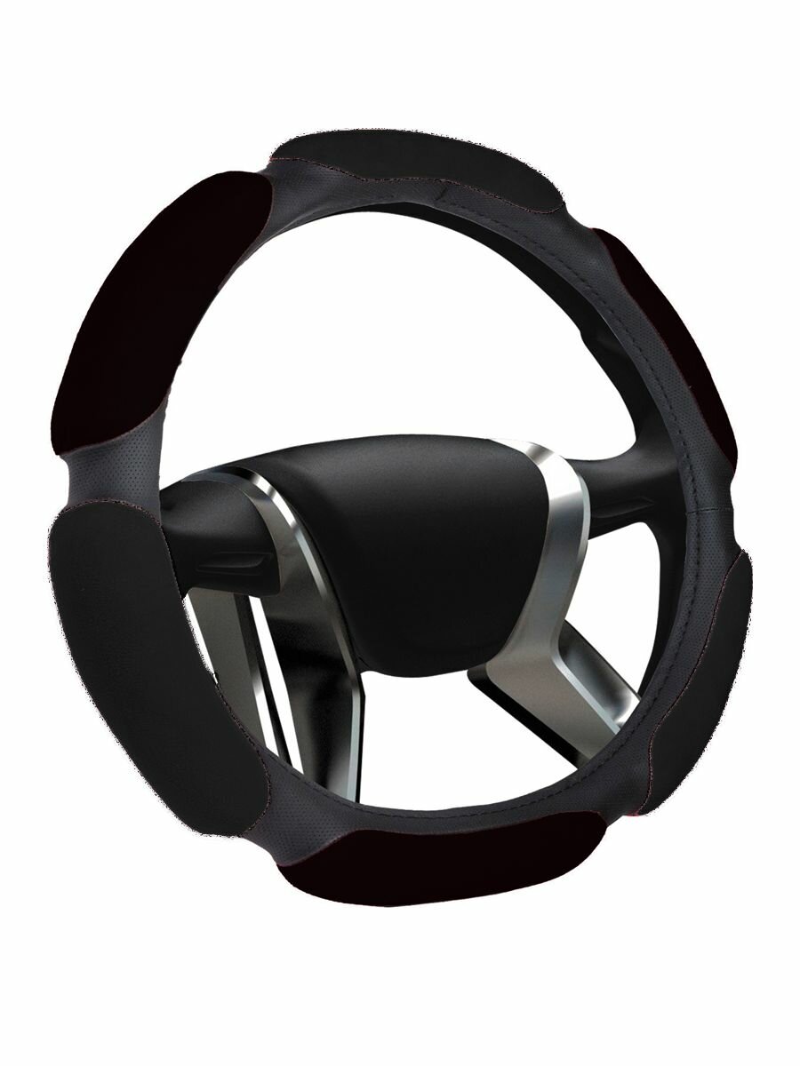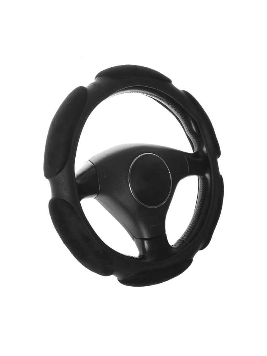 10 цен на Оплетка рулевого колеса SPONJ37/BL, экозамша, съемная, черная