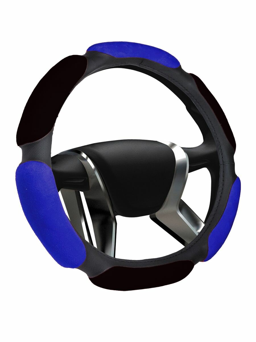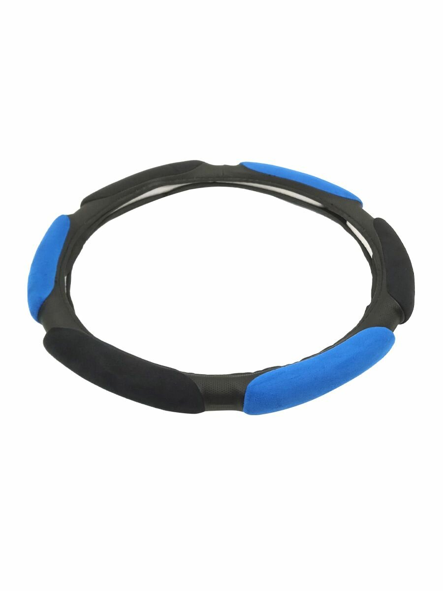 Оплетка руля NEW EPOCH SPONJ37, экокожа, диаметр 37см, съёмная, синяя информация: