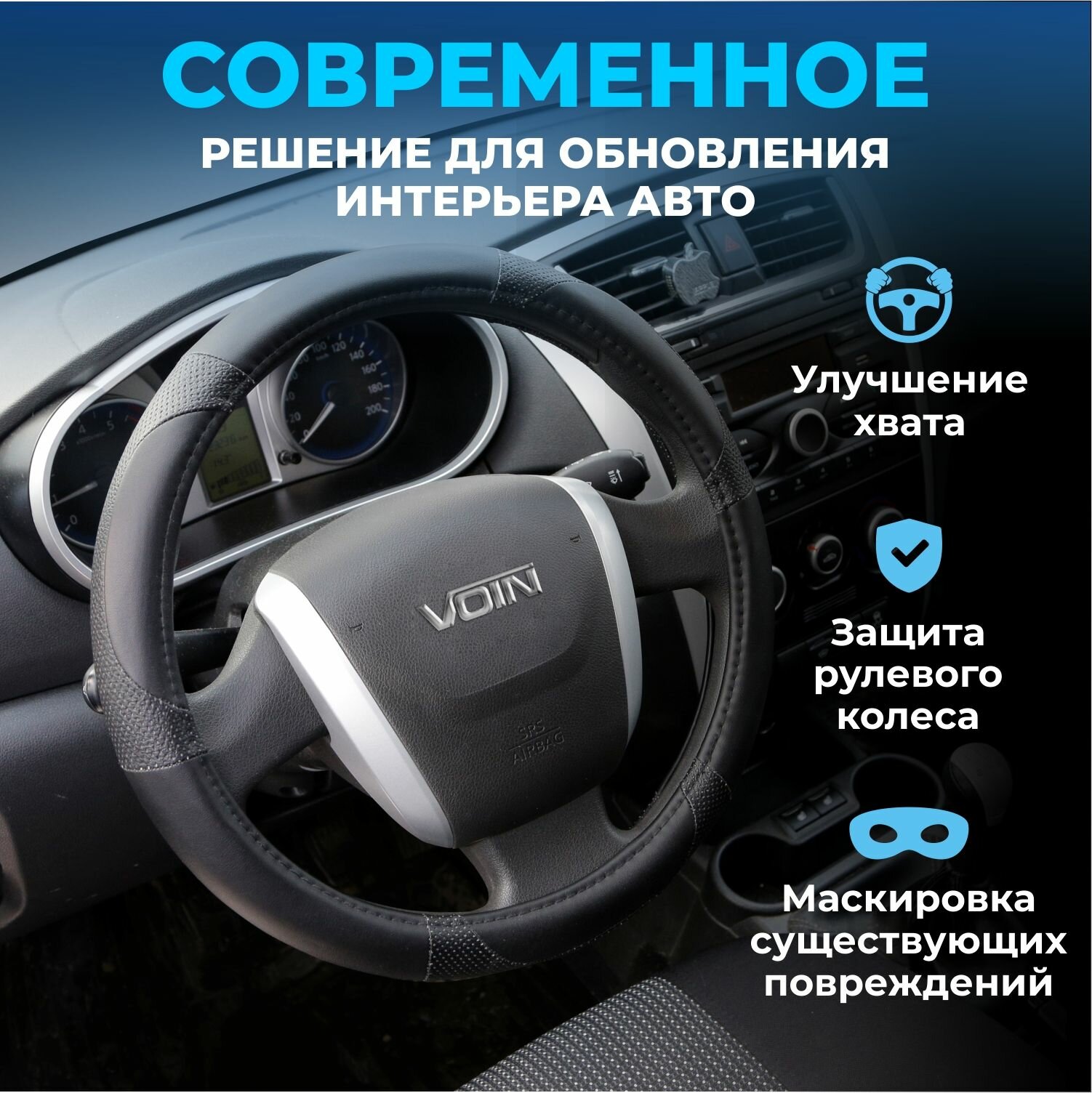 Отзывы на Оплетка на руль 37-39 см VOIN COMBO (М) чехол на руль автомобиля черный