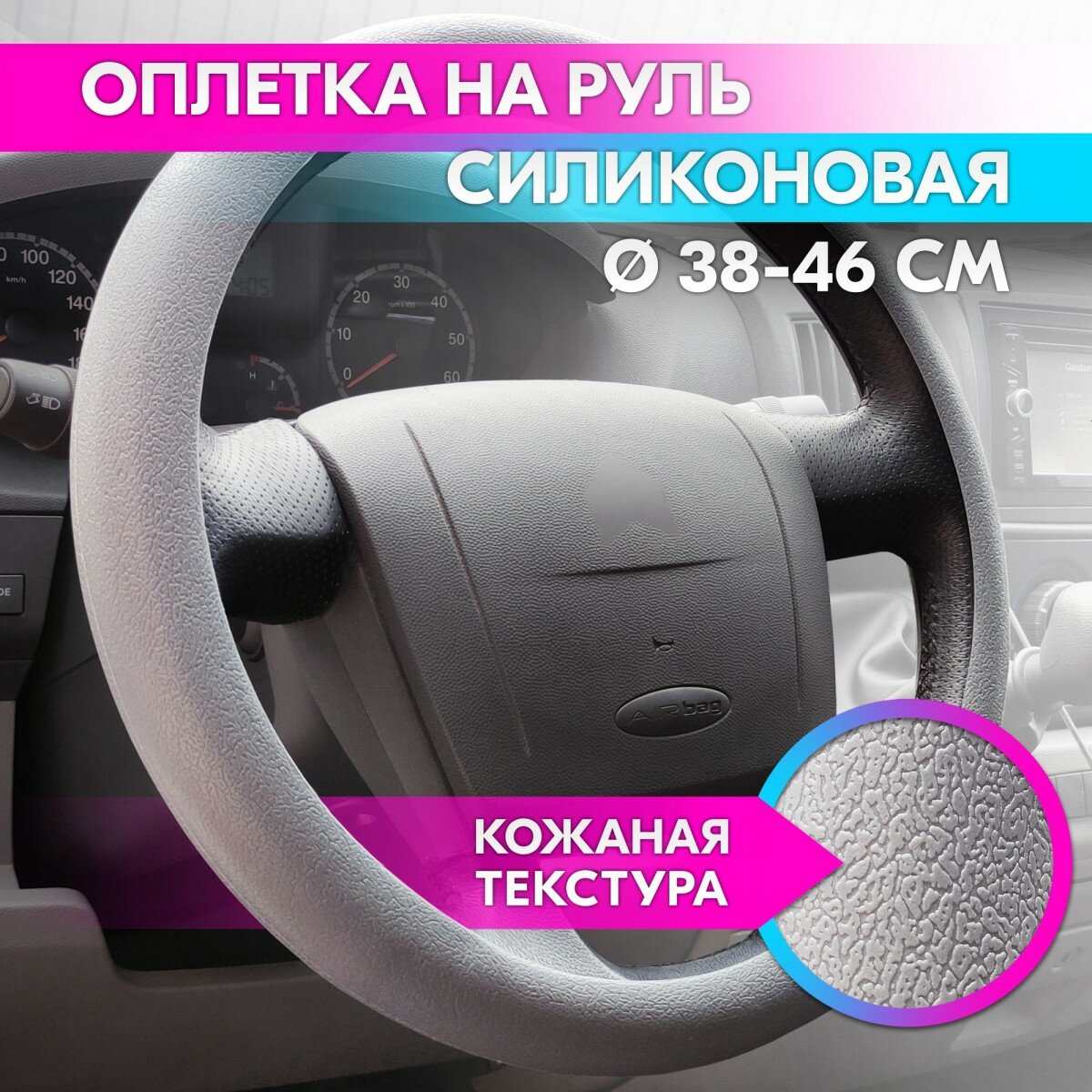 Оплетка на руль универсальная из силикона «BIG» 38-46 см (серая, кожаная текстура) belais #21776 информация: