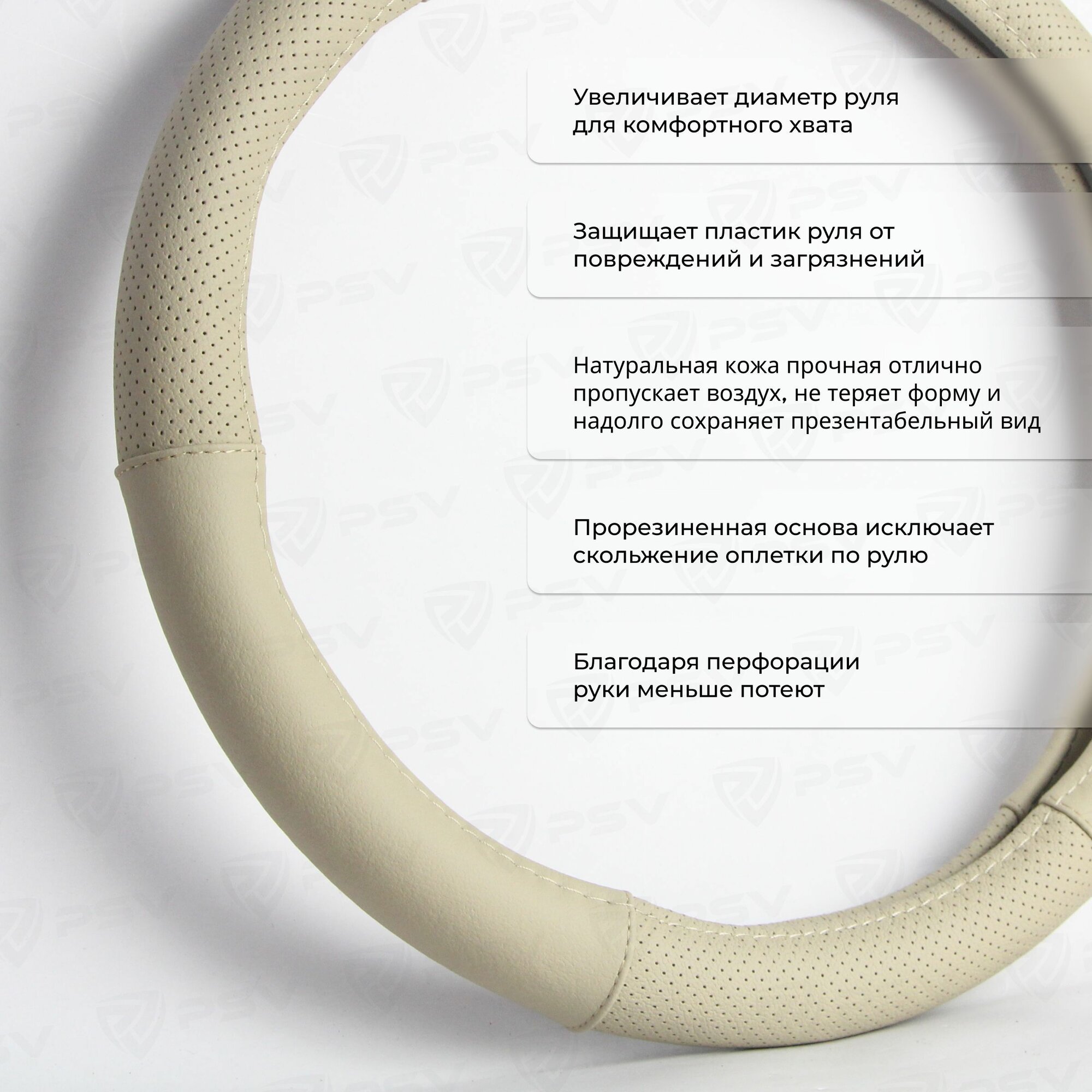 10 цен на Чехол на руль оплетка из натуральной кожи PSV BIND (Бежевый) M 37-39 см, с перфорацией