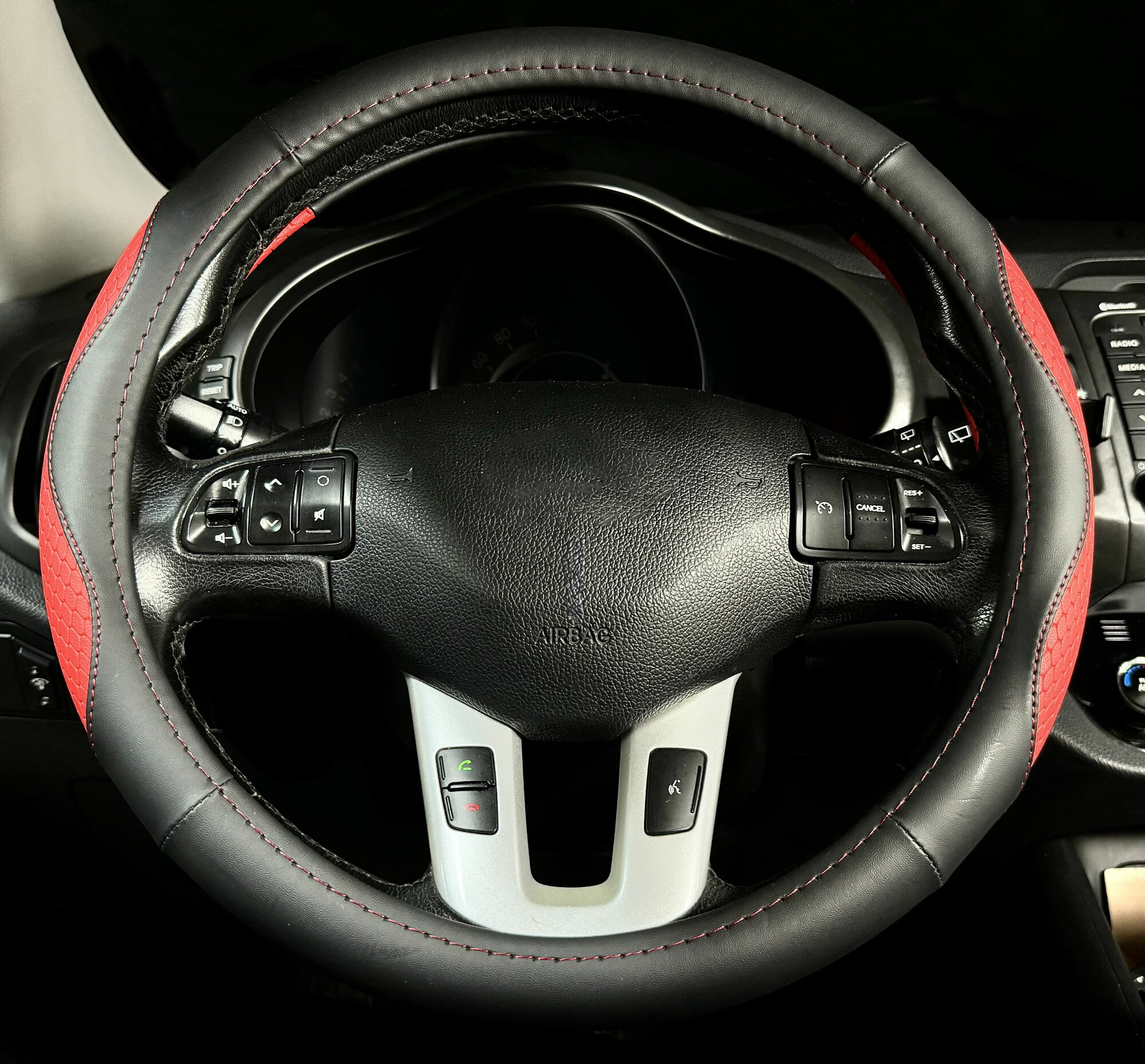 Отзывы на Оплетка, чехол (накидка) на руль Хонда Джаз (2014 - 2017) хэтчбек 5 дверей / Honda Jazz, экокожа, Черный и красный