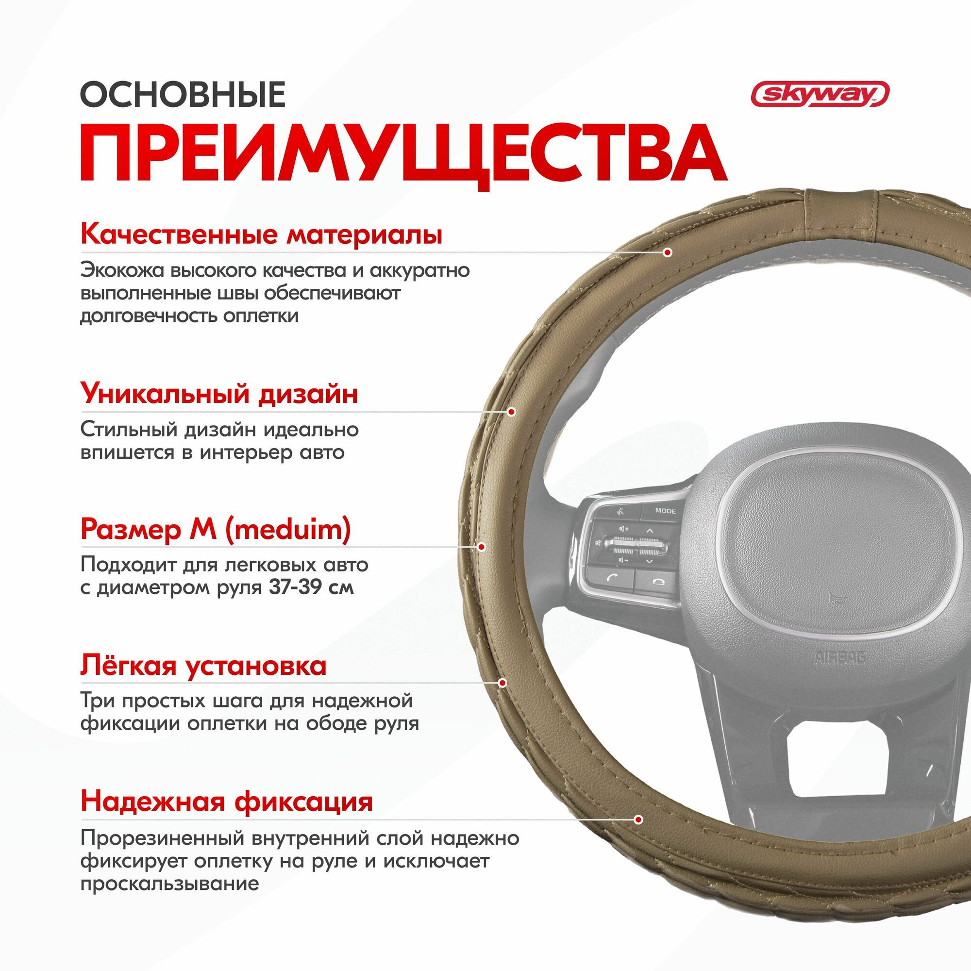 10 цен на Оплетка на руль Skyway Modern-4 из экокожи бежевая 38 см