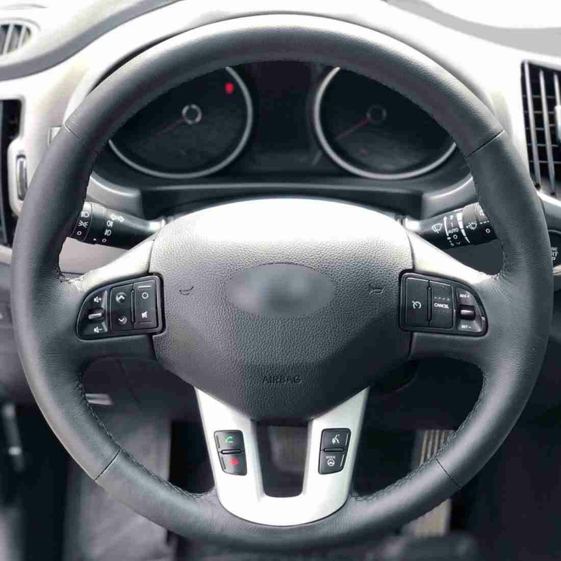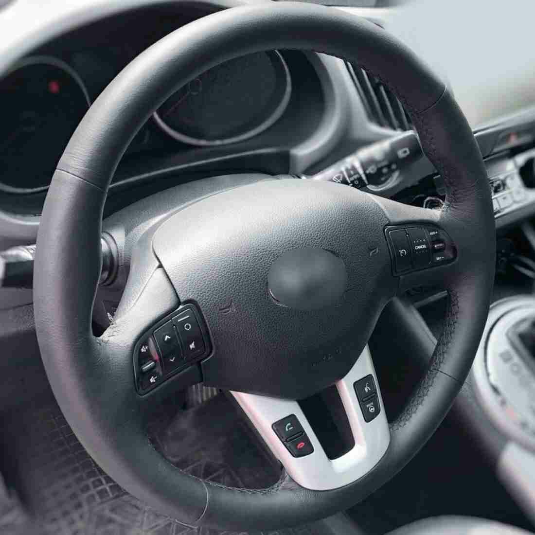 10 цен на Оплетка на руль из натуральной кожи Kia Sportage III (SL) 2010-2016 г. в. (для замены штатной кожи на руле с подогревом, черная) belais #21560