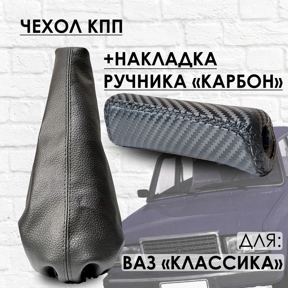 Чехол КПП и Накладка ручника "Карбон", ВАЗ Классика, черная строчка информация: