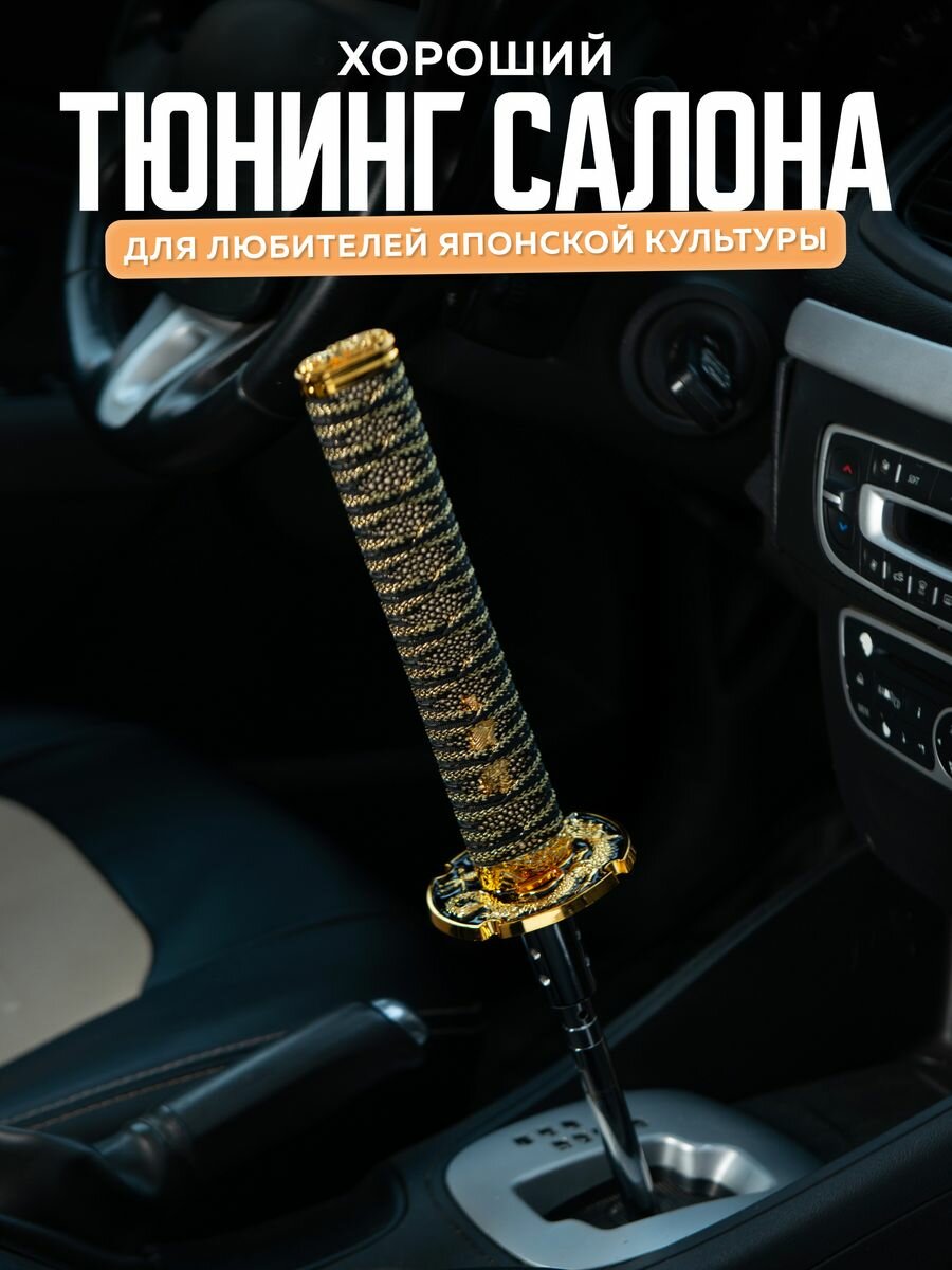 10 цен на Насадка на ручку кпп универсальная в форме катаны Меч самурая, 20 см, золотистый