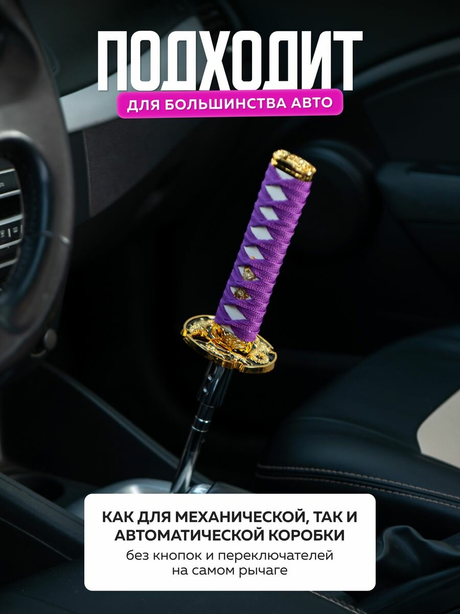 Отзывы на Насадка на ручку кпп универсальная в форме катаны Меч самурая, 15 см, фиолетовый