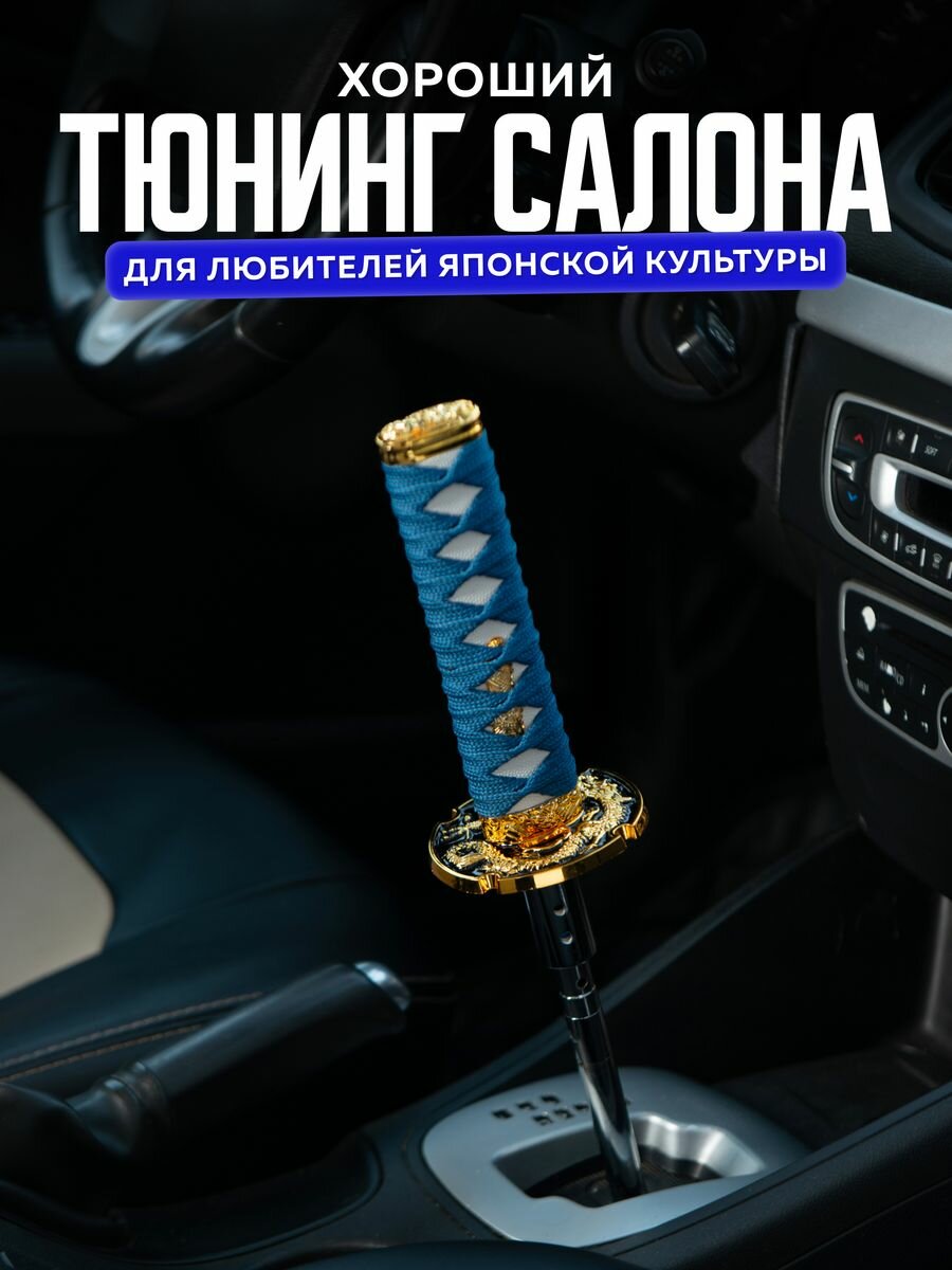 10 цен на Насадка на ручку кпп универсальная в форме катаны Меч самурая, 15 см, синий