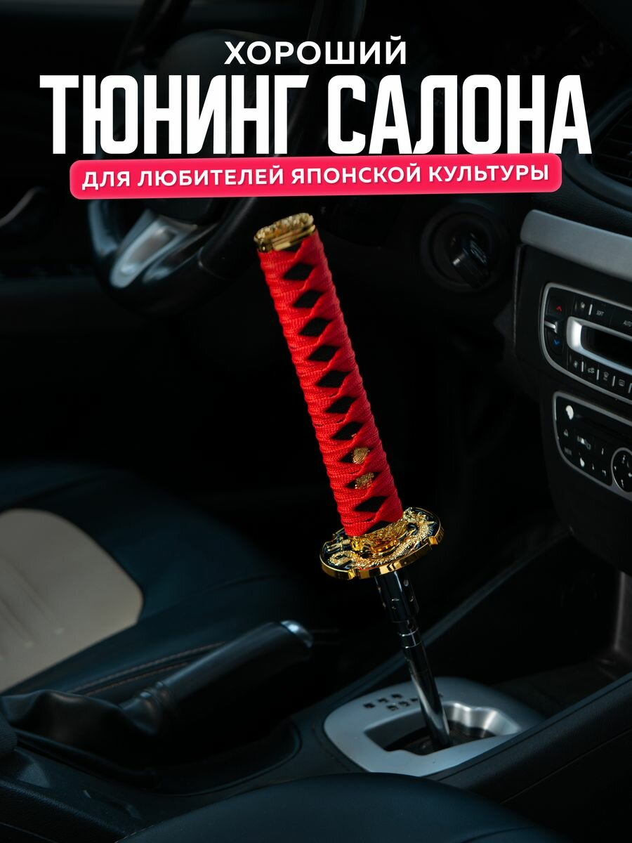 10 цен на Насадка на ручку кпп универсальная в форме катаны Меч самурая, 20 см, красный