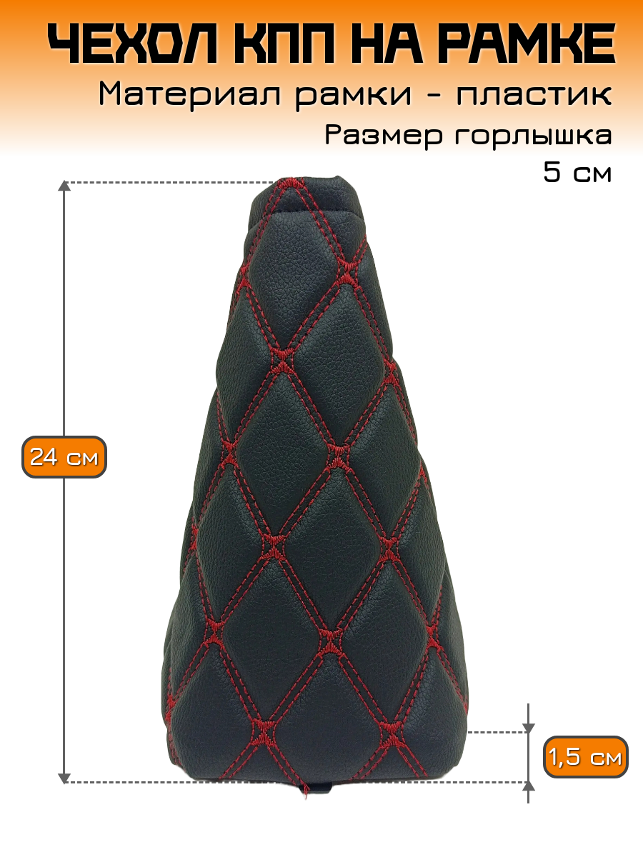 10 цен на Чехол КПП на ВАЗ-11183, ВАЗ-11193 Лада Калина-1 (Lada Kalina-1) -черный с красной двойной строчкой "ромб-бабочка"